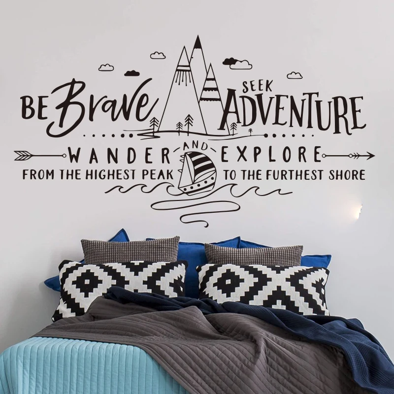 * 1 Набор Настенная виниловая наклейка «Будь храбрым ищет приключений», «бродить и исследовать», Настенная Наклейка для мальчика комната, детская комната