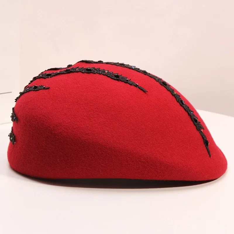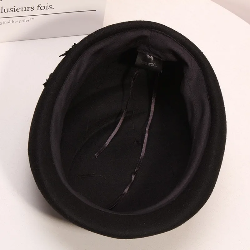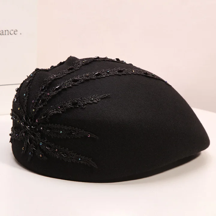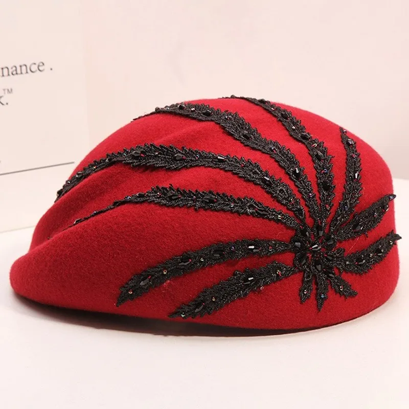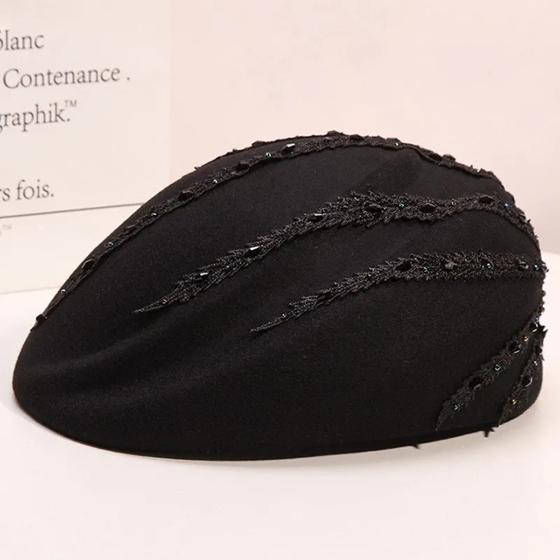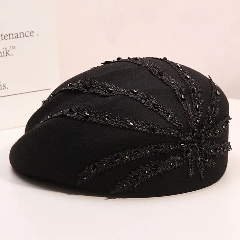 Женский шерстяной берет H790 в Корейском стиле на осень и зиму, британский кружевной берет с цветами в стиле ретро, женская шапка для вечеринки, модная шапка