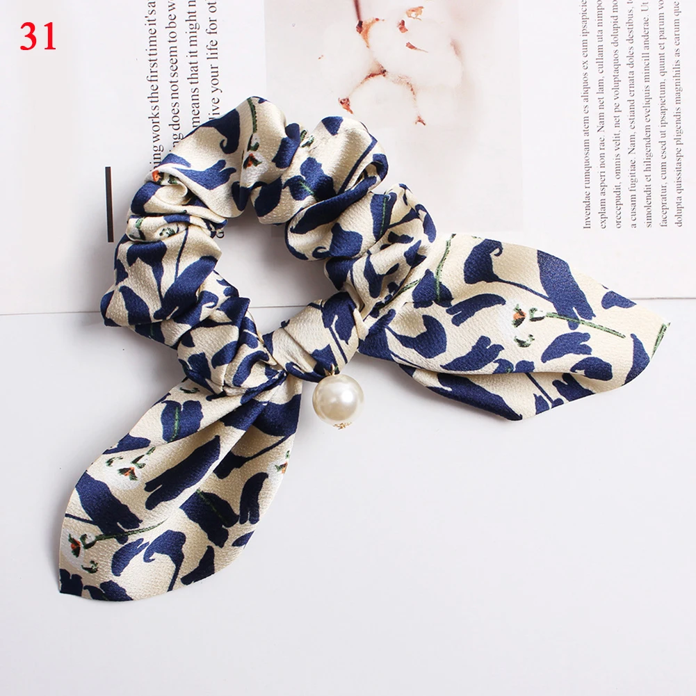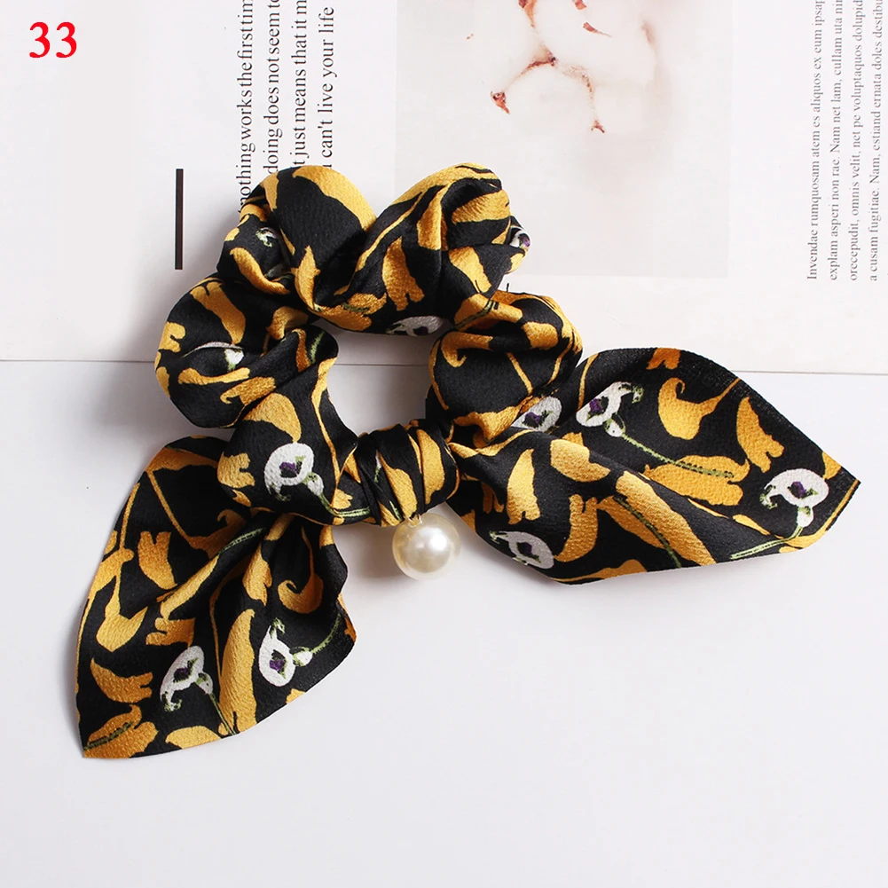 С украшением-бантом, стример с жемчужинами, резинка для волос для женщин аксессуары для волос с цветочным принтом, "конский хвост", держатель бантов, лента для волос резинки для волос