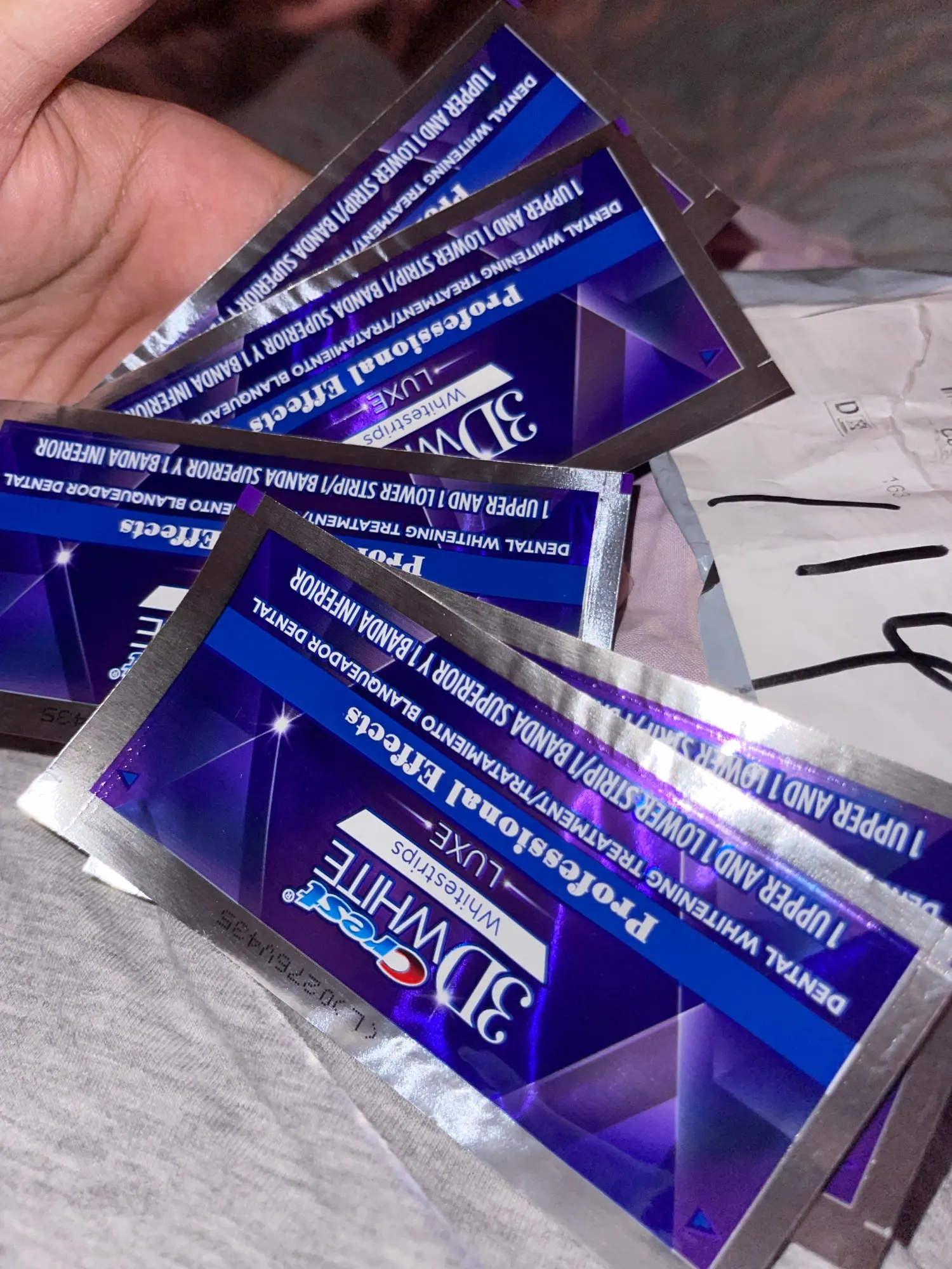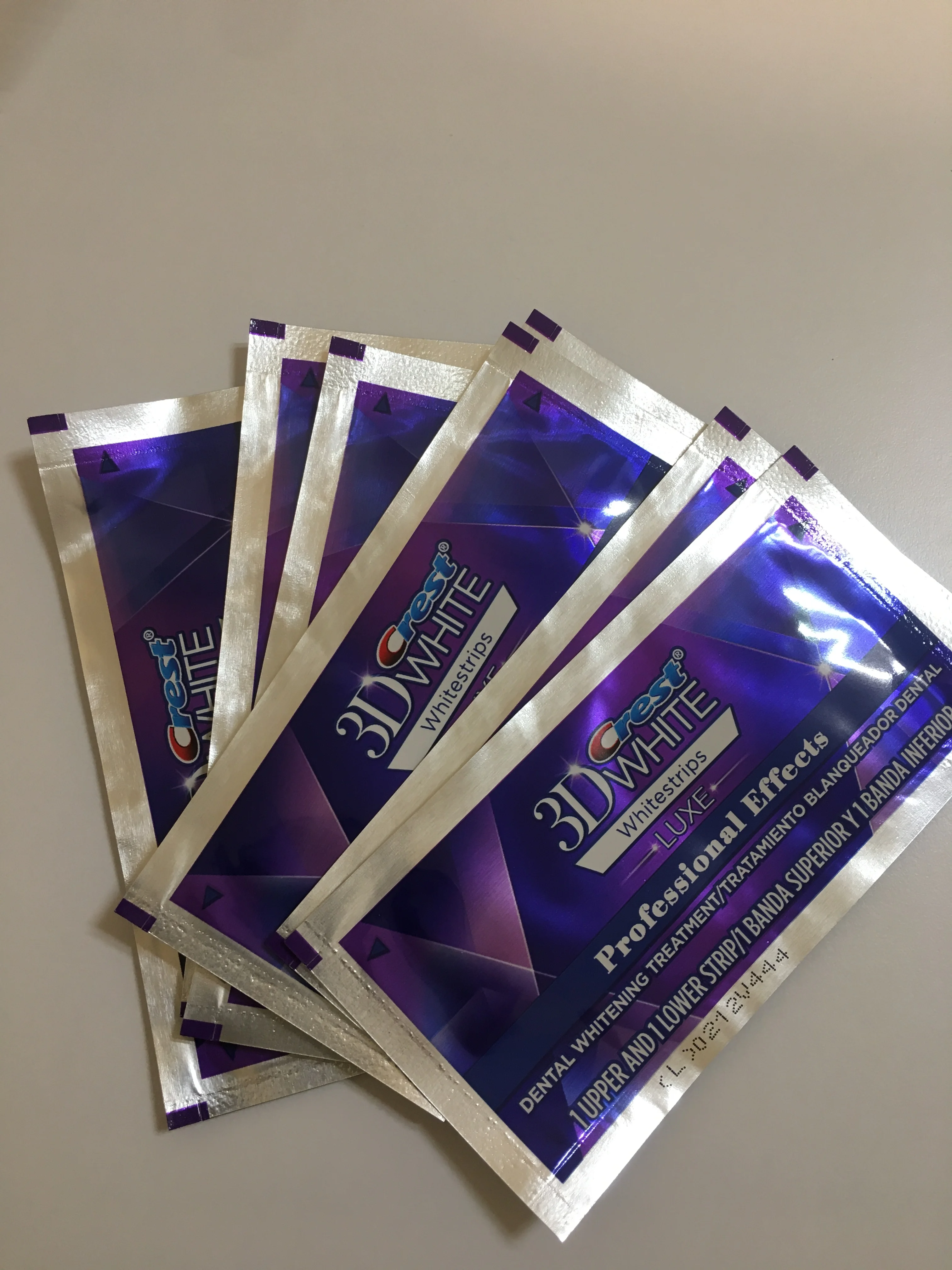 Я получил свою посылку sayai, аккаунт есть, я не думаю, что это настоящие полосы Crest, полосы немного короткие и не покрывают щетку зубов перед повреждением, Я проверил только один раз, я не видел отбеливания, однако полосы оставляют зубы очень чистыми.