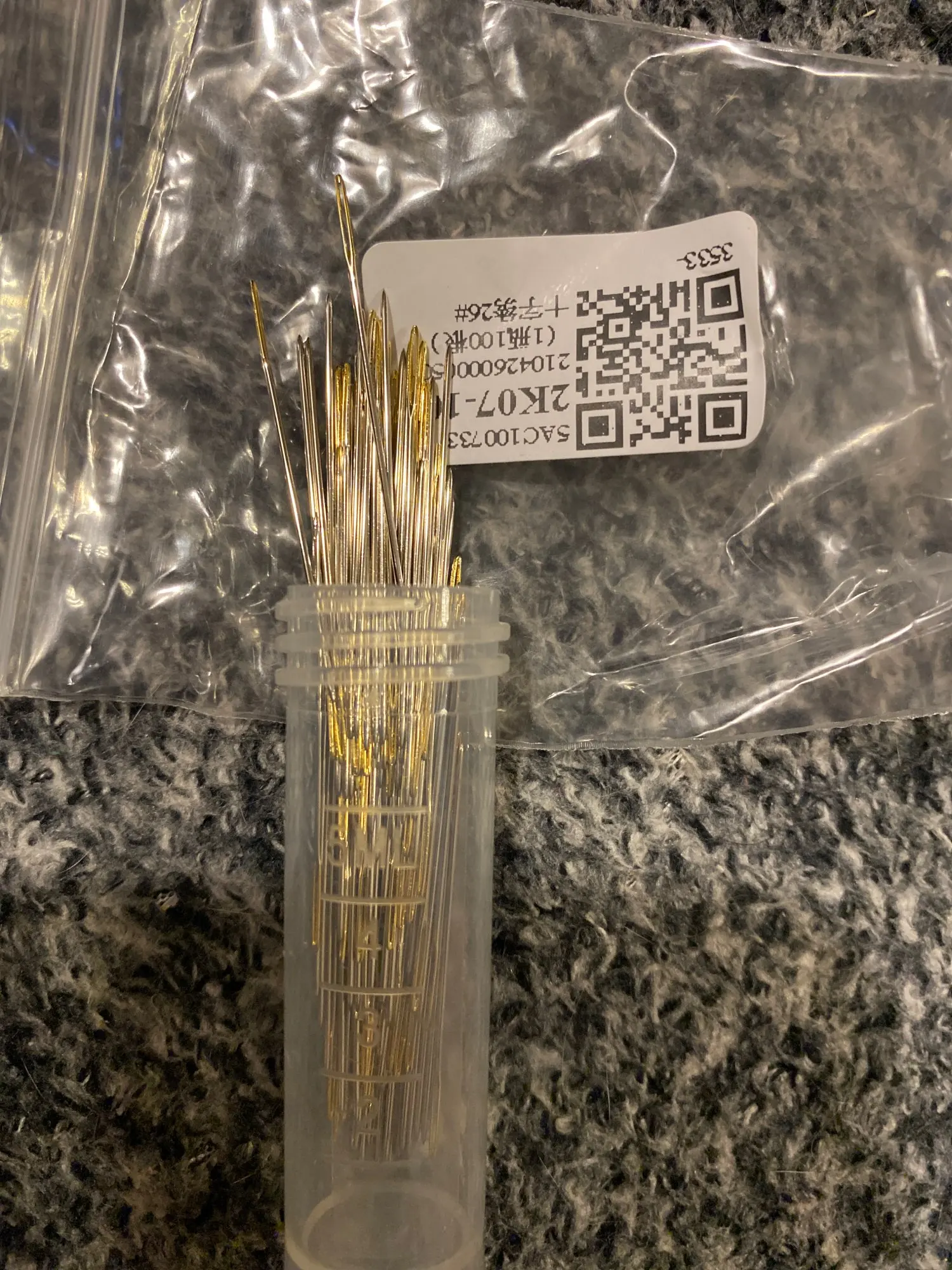 долгая доставка , одна иголочка была с бракованным ушком,но продавец положил несколько игл в подарок. удобный контейнер для хранения игл . буду приобретать ещё.