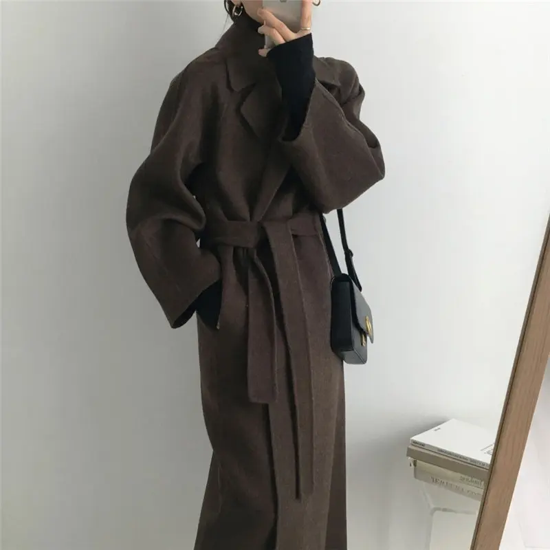 Женское шерстяное пальто с поясом, длинное пальто в классическом ретро-стиле, в ленивом французском стиле, теплая, повседневная, 2020