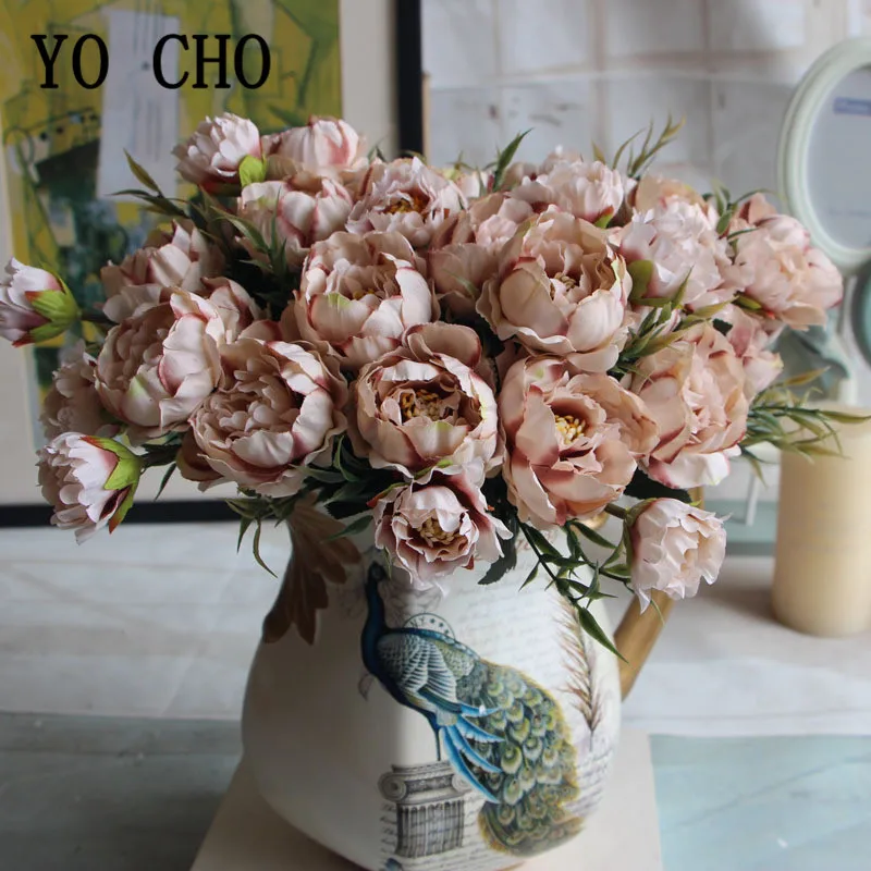 Шелковые пионы с 5 головками, искусственные цветы, букет сделай сам, шелковые искусственные цветы для свадебной вечеринки, домашний стол, садовый декор, маленький букет