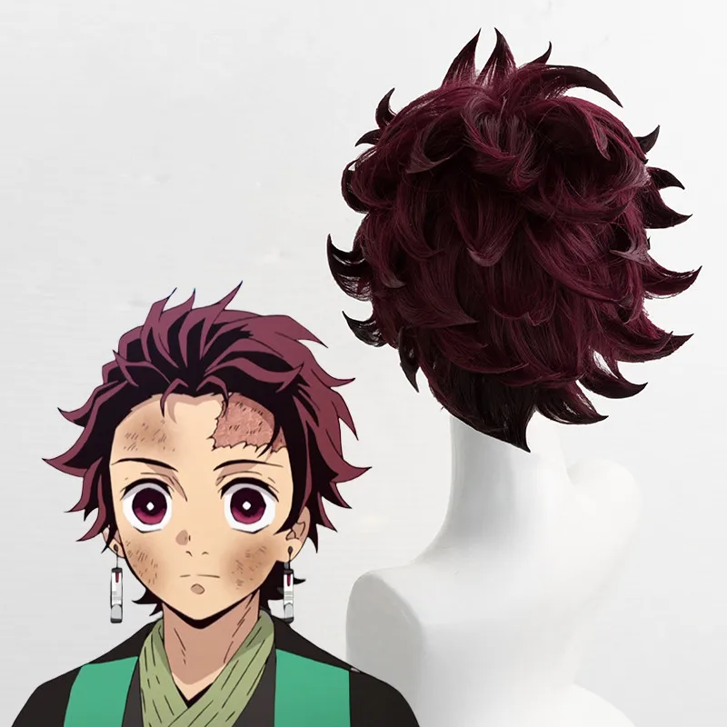 Демон убийца: Kimetsu no Yaiba Tanjiro Kamado Косплей парик короткий каштановый коричневый термостойкие волосы + парик