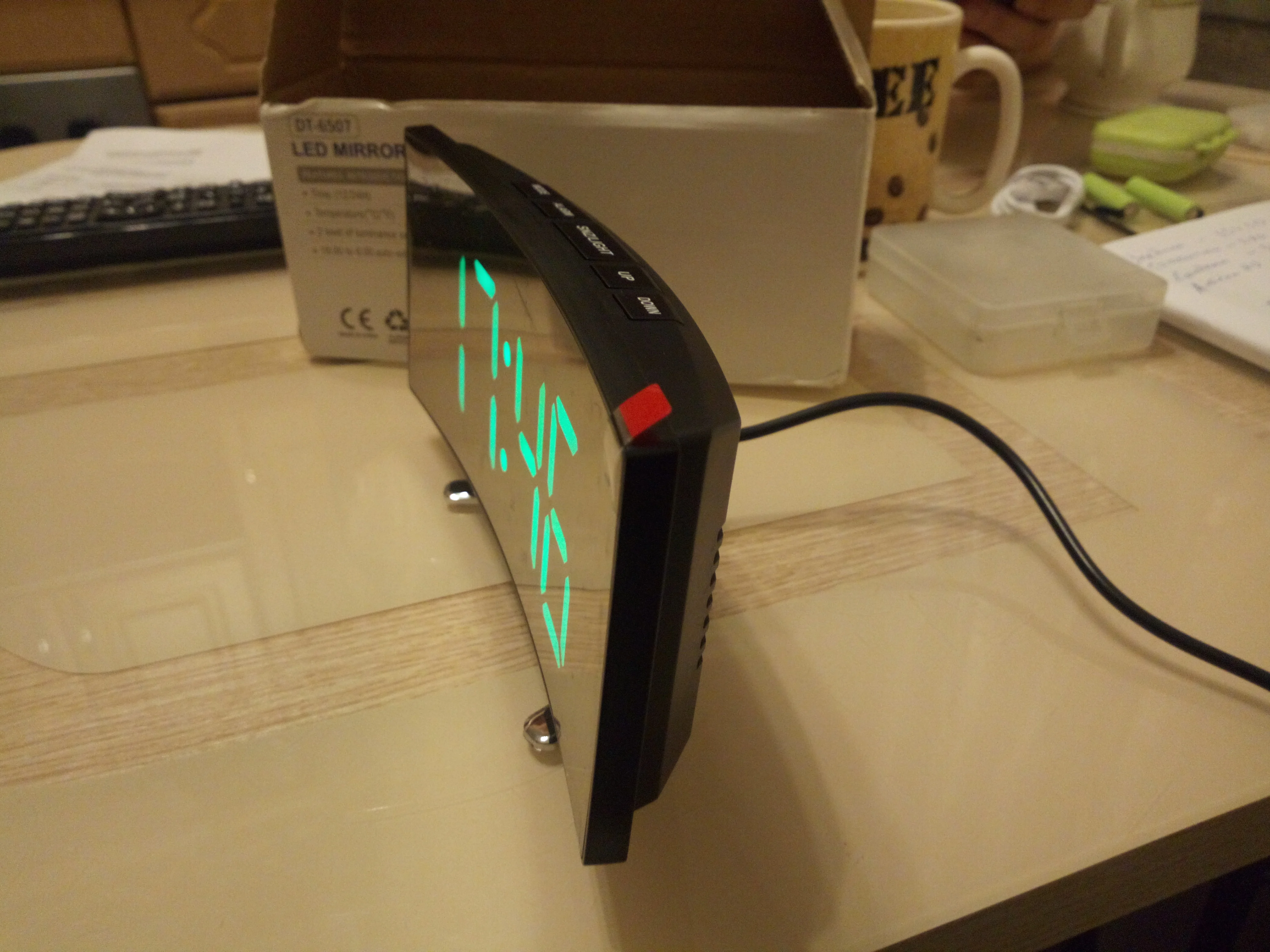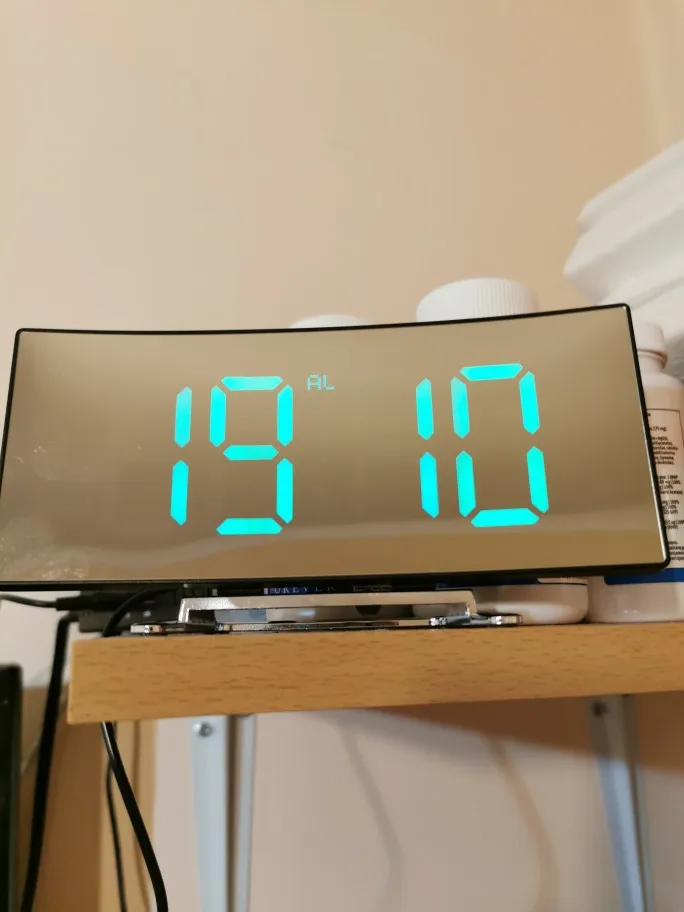 Ночью он загорается слишком сильно, даже менее яркое положение, что делает свечение раздражающим. Звук будильника слишком короткий, так как вы глубоко спите, вы его не услышите.