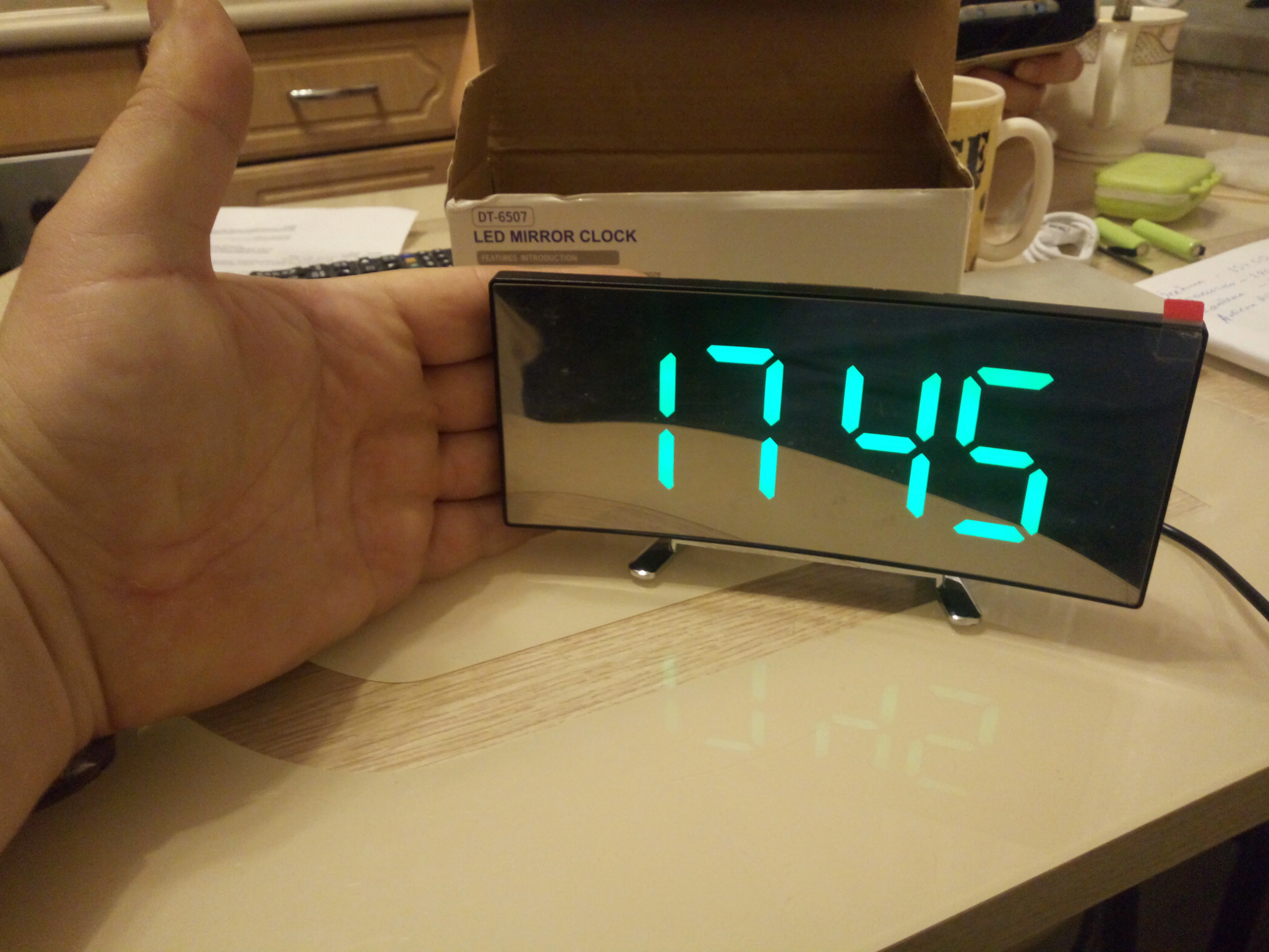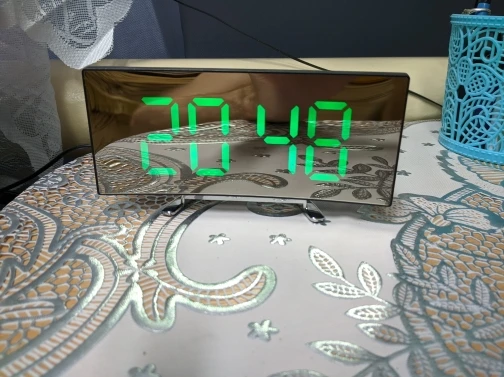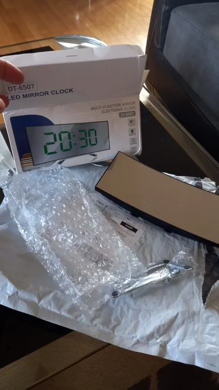Часы как описано, цифры большие, с очень хорошей видимостью, он имеет два режима освещения, календарь и термометр, отделка зеркала, не раздражает, эстетически приятно. Доставка была быстрой с отслеживанием всегда было известно, что finde был продуктом, Продавец настоятельно рекомендует, сын сомневается, что буду покупать в вашем магазине, Бесплатная покупка