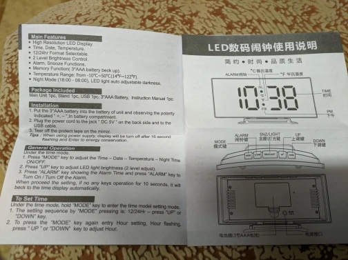 Пришел так же, как на фото. Кажется, работает нормально, занимает несколько минут, чтобы научиться программировать, но в противном случае это хорошо. Просто желаю вам увеличить Громкость будильника