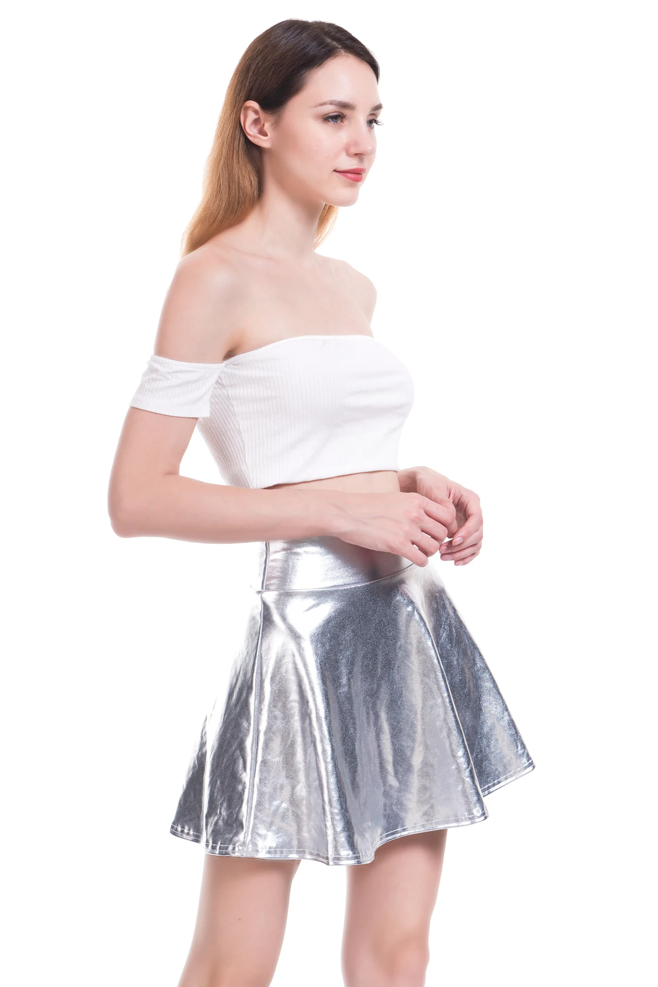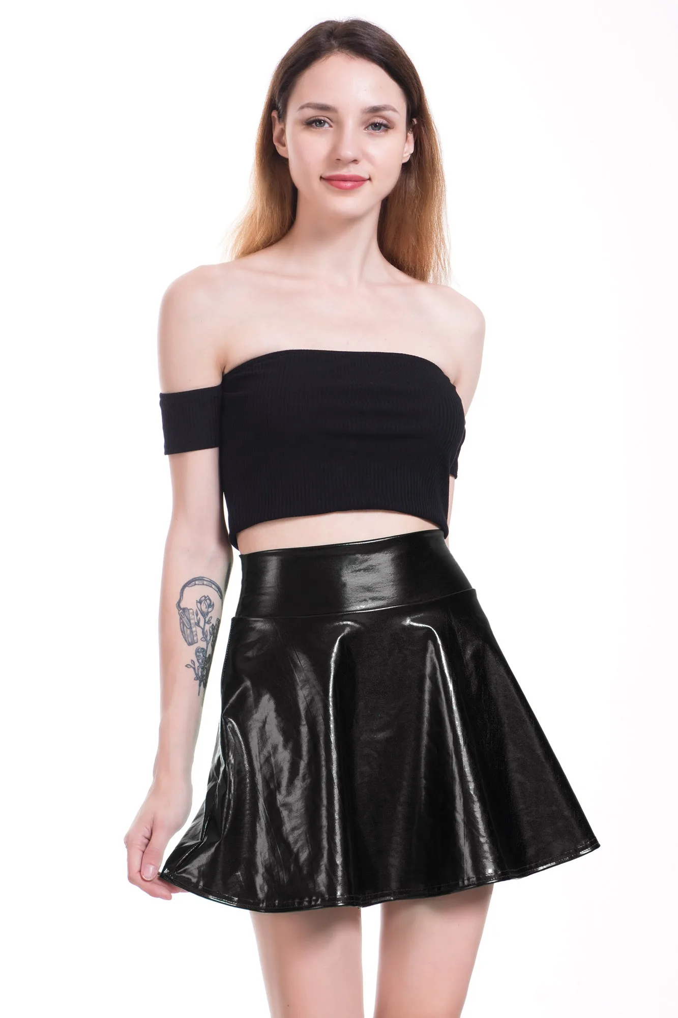 Для женщин Высокая Талия Мини-юбки Яркий искусственная кожа выше ко...