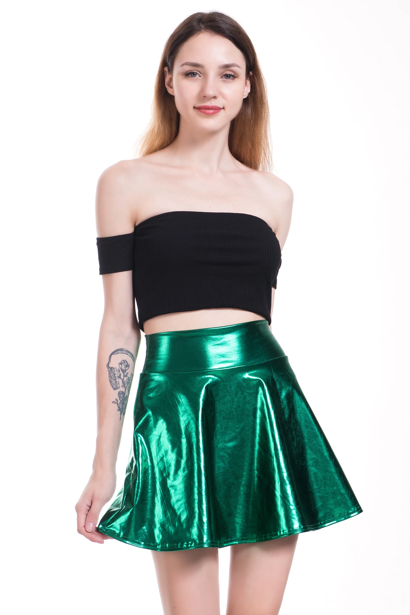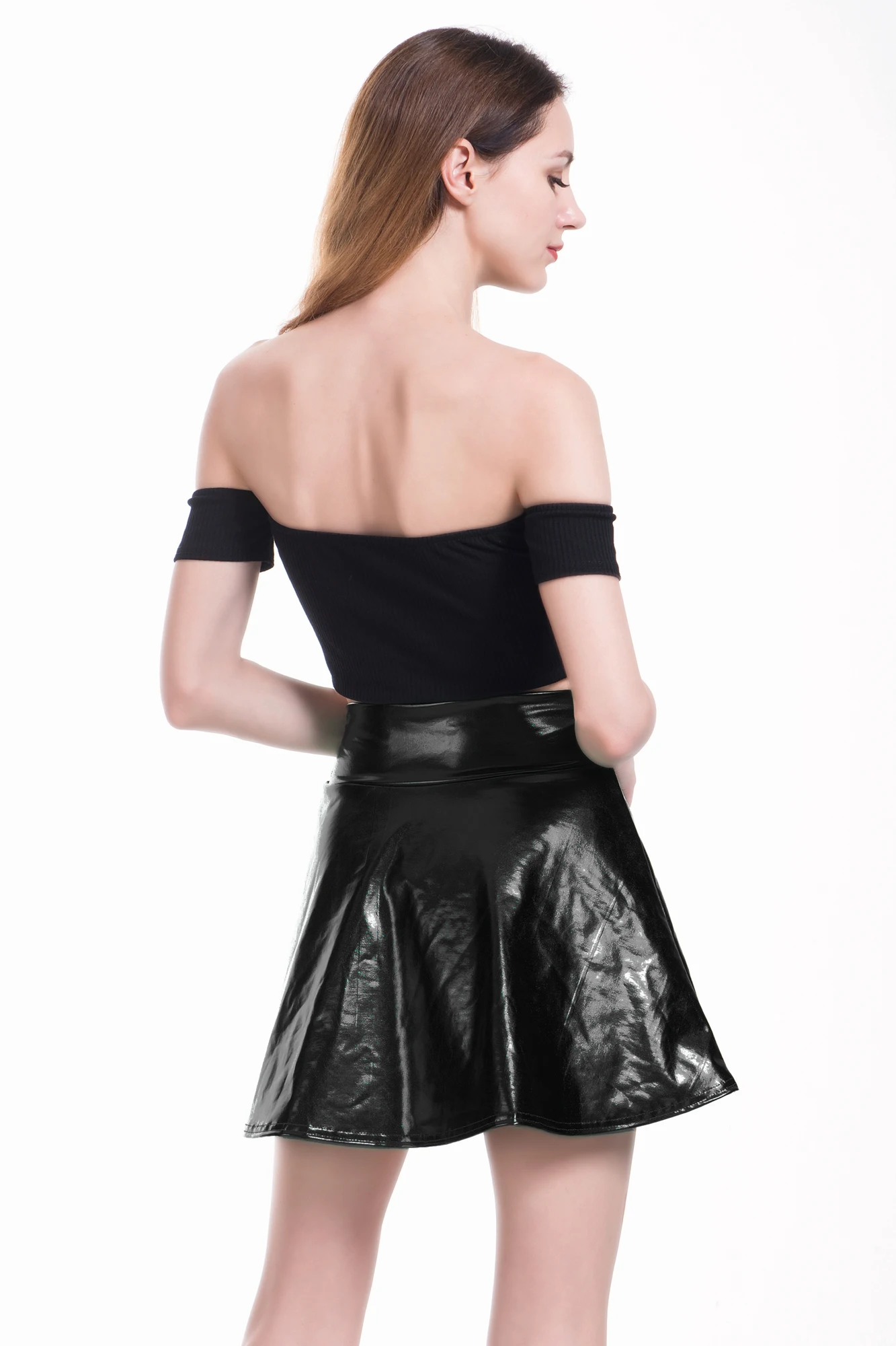 Пышная плиссированная юбка-зонтик из искусственной кожи с высокой талией, сексуальная ночная Клубная Одежда для танцев, мини-юбки Jupe Faldas