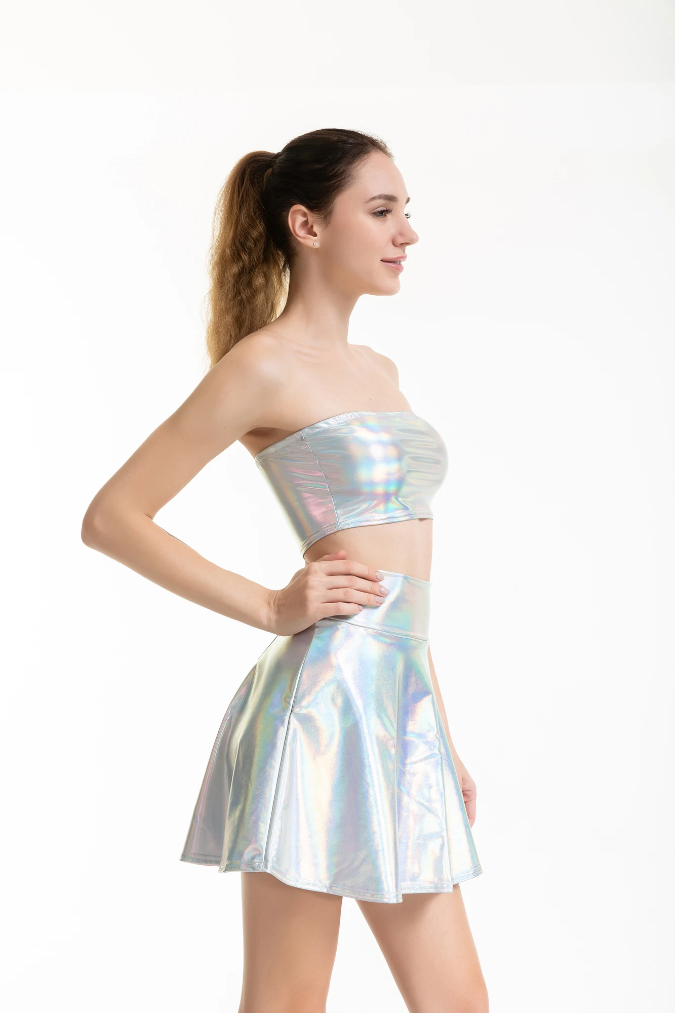 Женская голографическая юбка, короткая Серебристая Лазерная юбка с ...