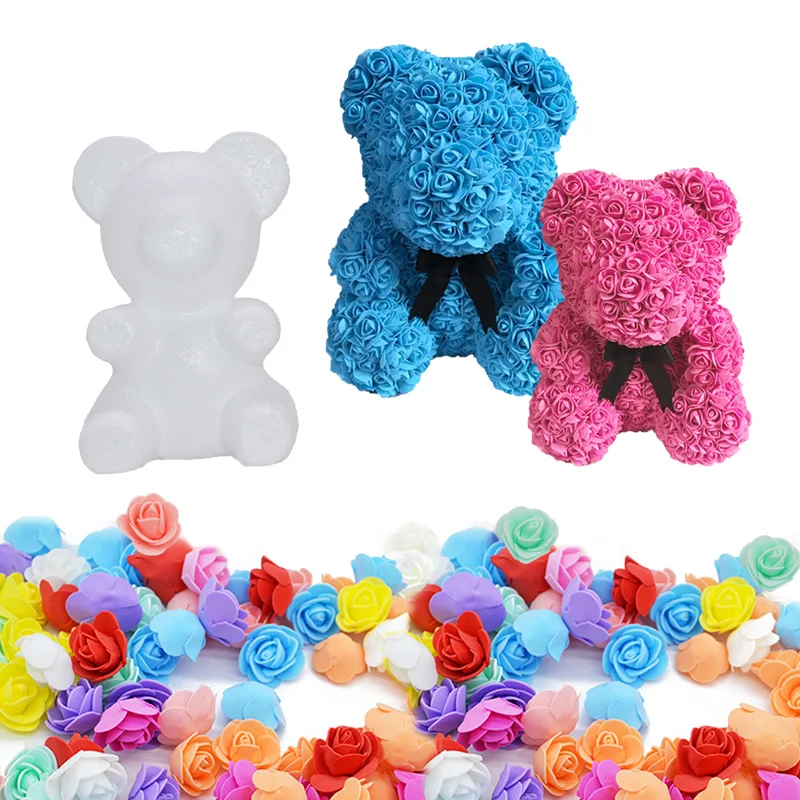 1 шт., красная роза, мишка тедди на День святого Валентина, подарок, искусственный цветок, пена, любовь, сердце, медведи, свадебное украшение, сделай сам, подарок девочке на день рождения