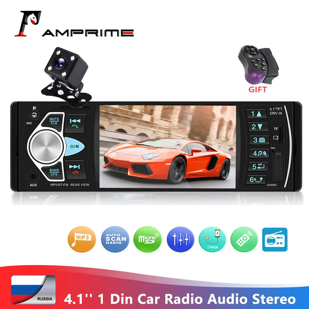 Автомагнитола AMPrime 4022D, 1 Din, 4,1 дюйма, Bluetooth, камера, USB