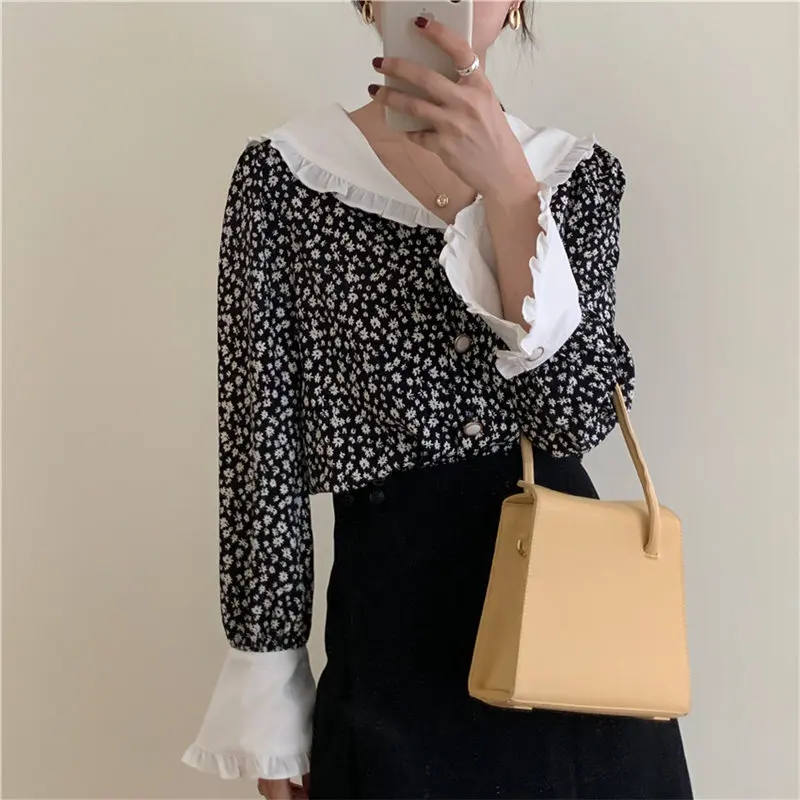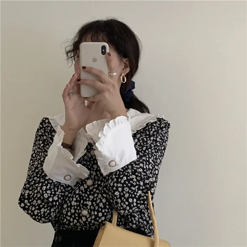 Женское платье с цветочным принтом, 2021 оборками, универсальные блузки