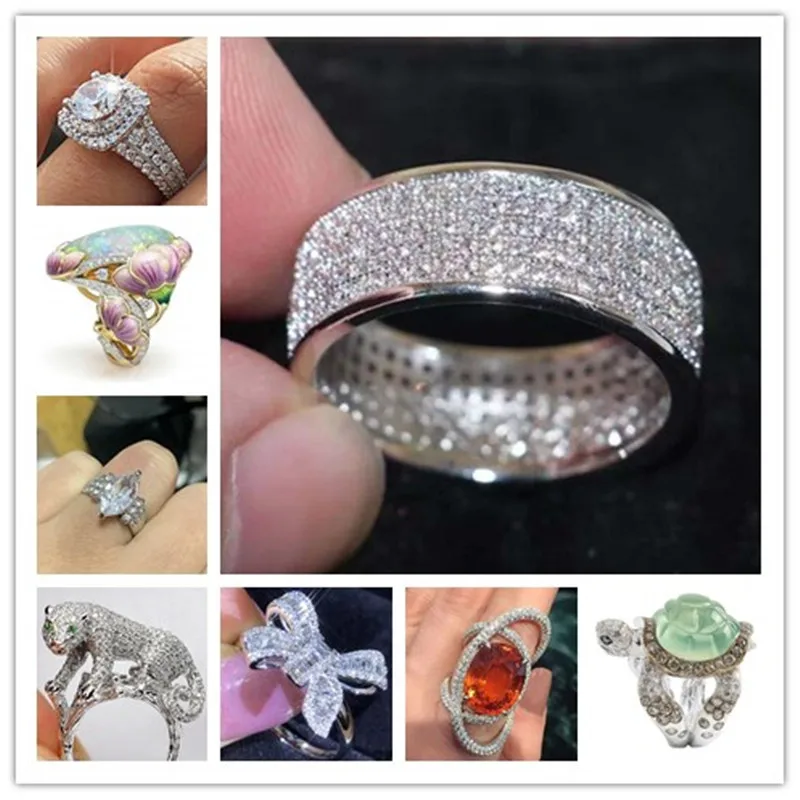 Суперблестящие серебряные кольца с цирконом для женщин кольцо с бантом леопард цветочные кольца на палец Свадебные обручальные ювелирные изделия для невесты подарки