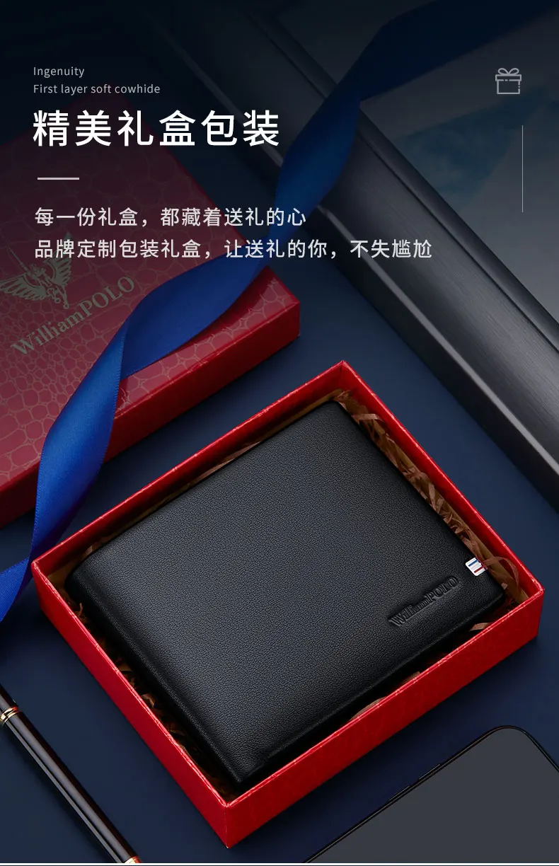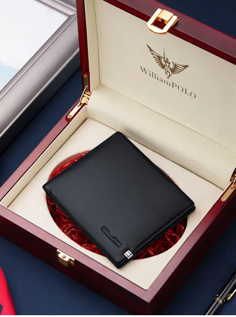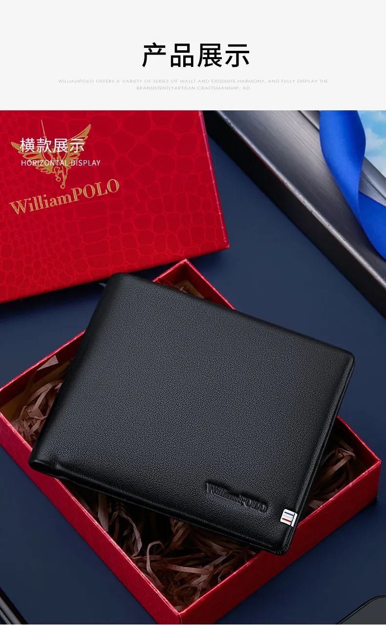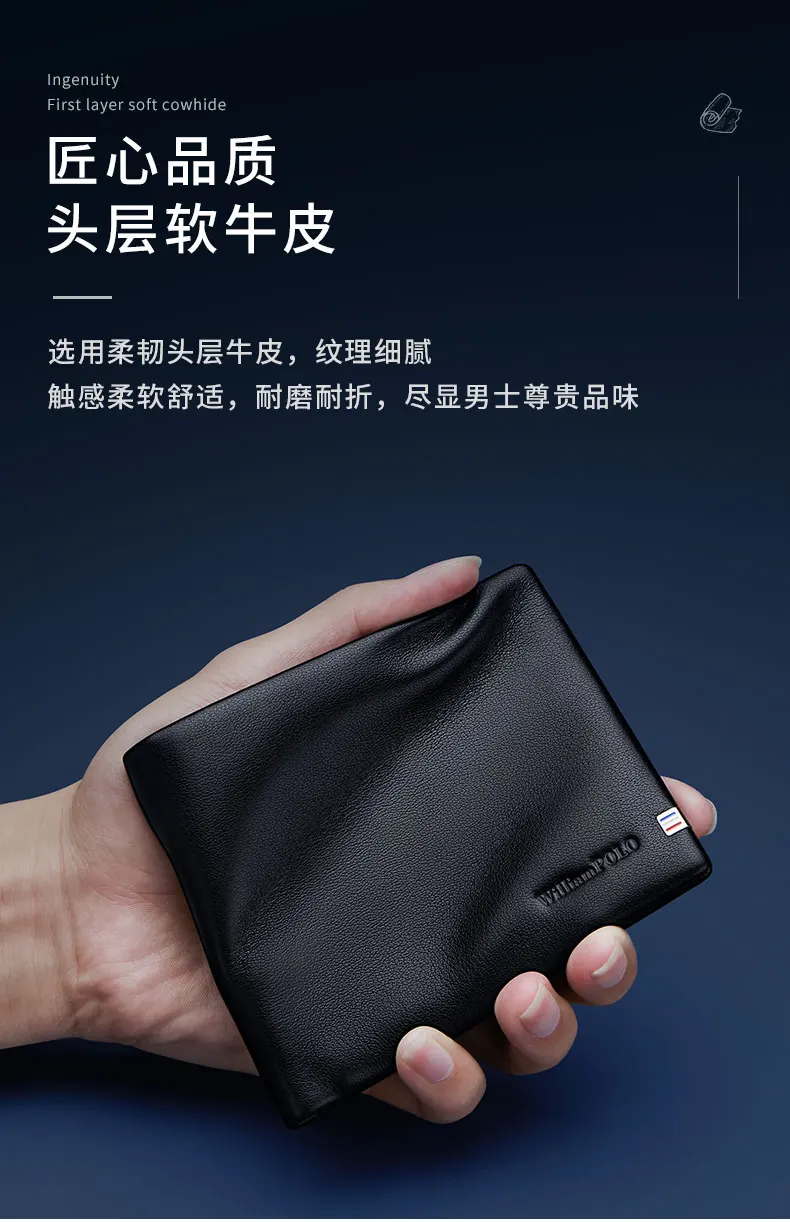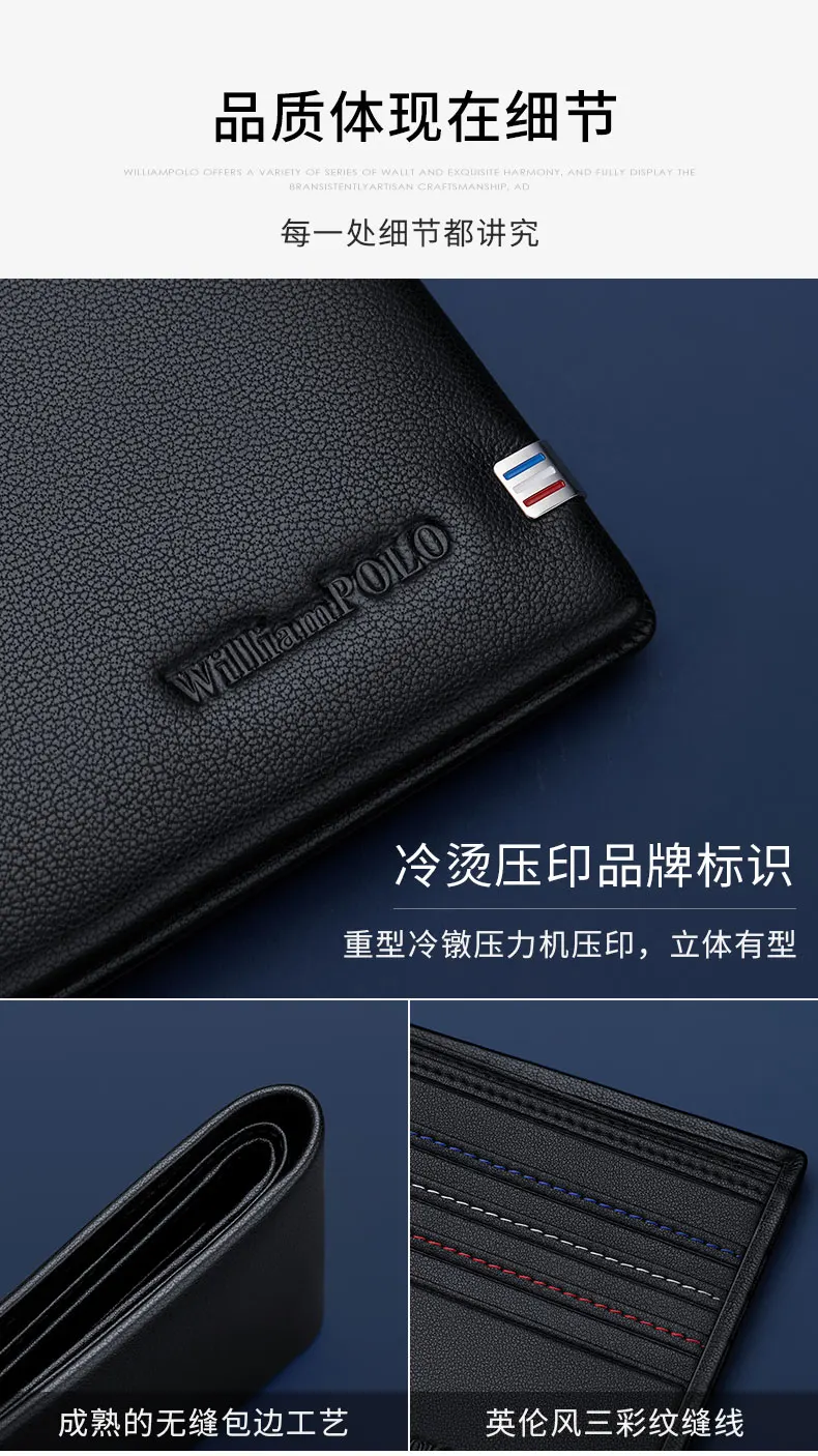 Короткий кошелек WILLIAMPOLO, мужской тонкий, с отделением для кредитных карт, складной, из натуральной кожи, с несколькими отделениями для карт, ультратонкий кошелек на молнии