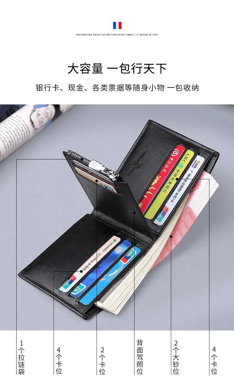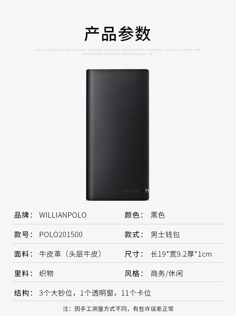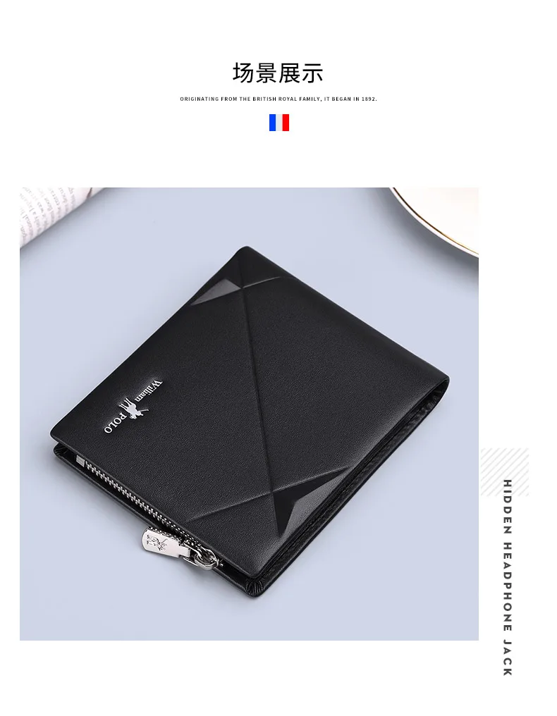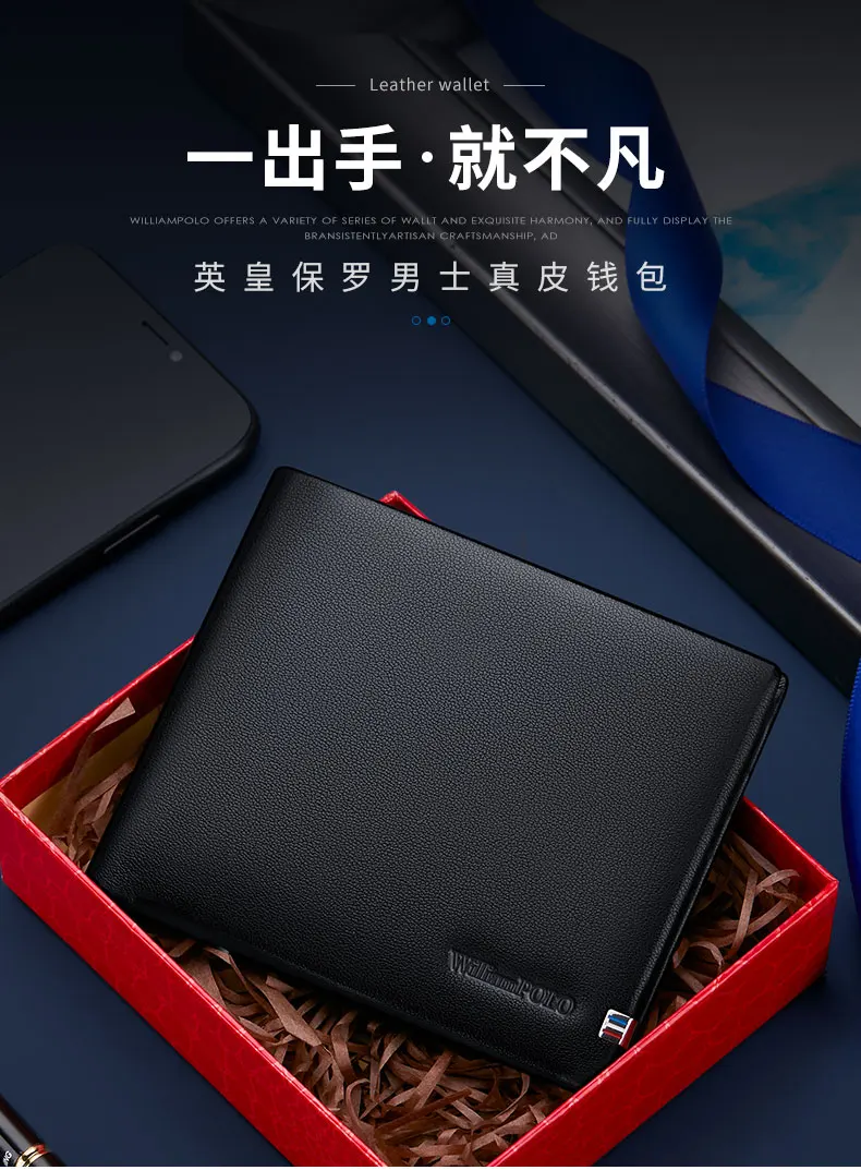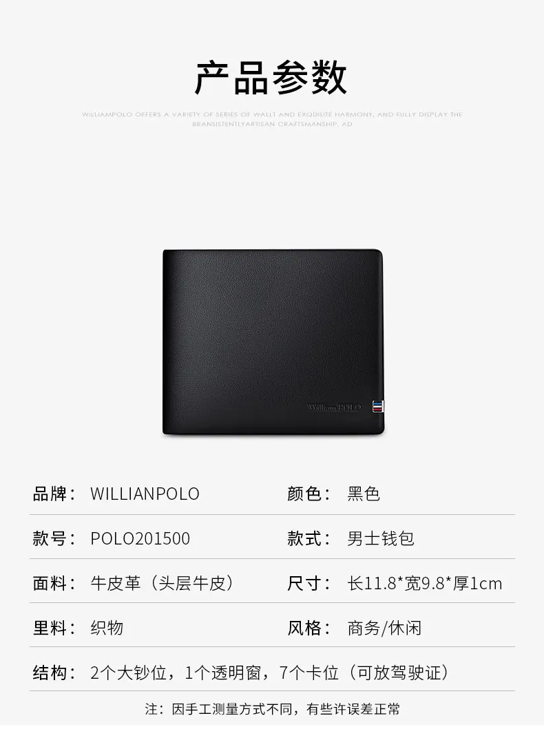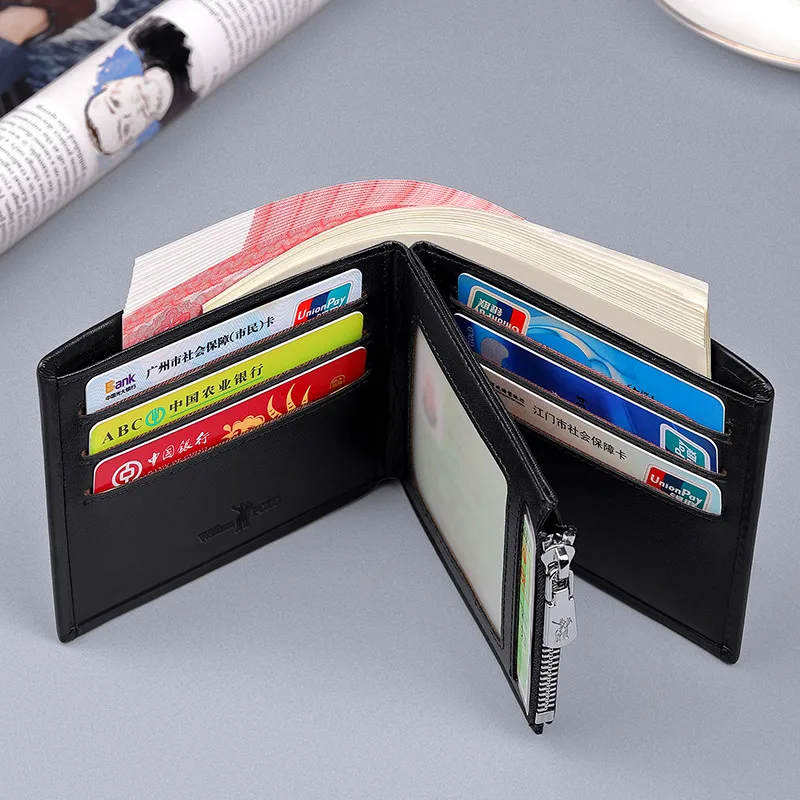 Короткий кошелек WILLIAMPOLO, мужской тонкий, с отделением для кредитных карт, складной, из натуральной кожи, с несколькими отделениями для карт, ультратонкий кошелек на молнии