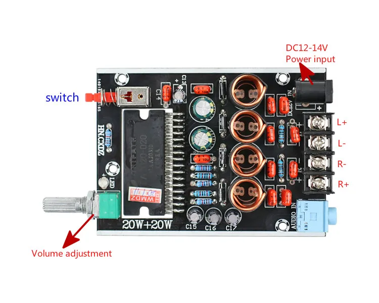 Цифровой усилитель мощности GHXAMP TA2020, 20 Вт * 2 класса T, аудио усилитель для 4-8 динамиков, аудио аксессуары, DIY 1 шт.