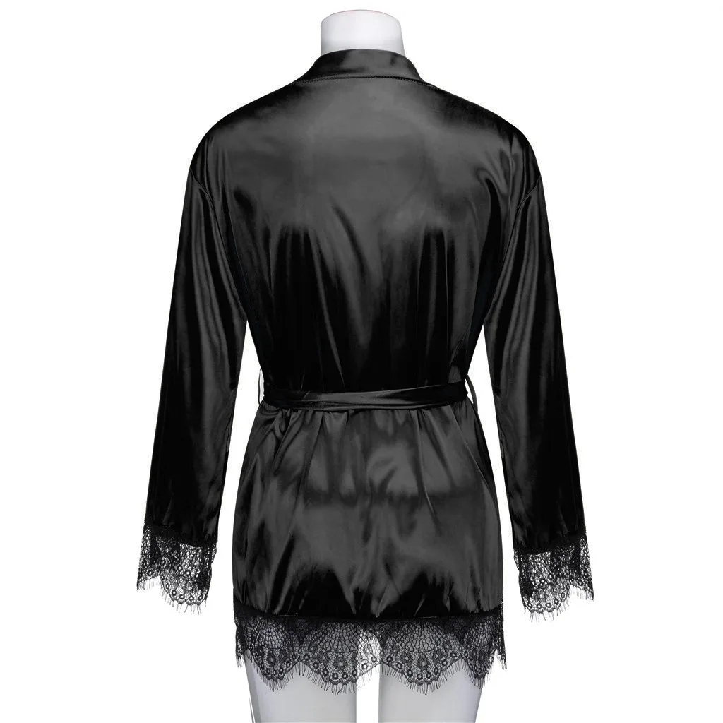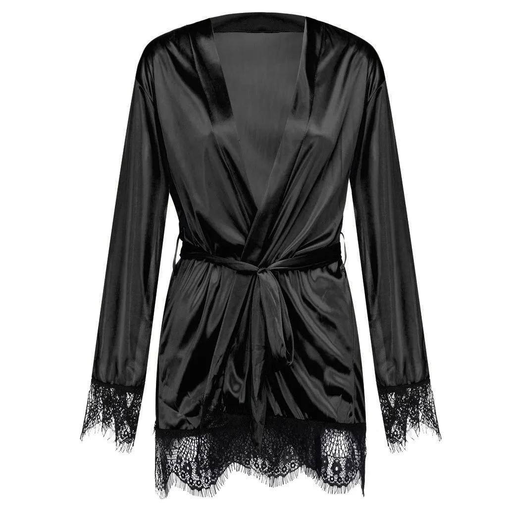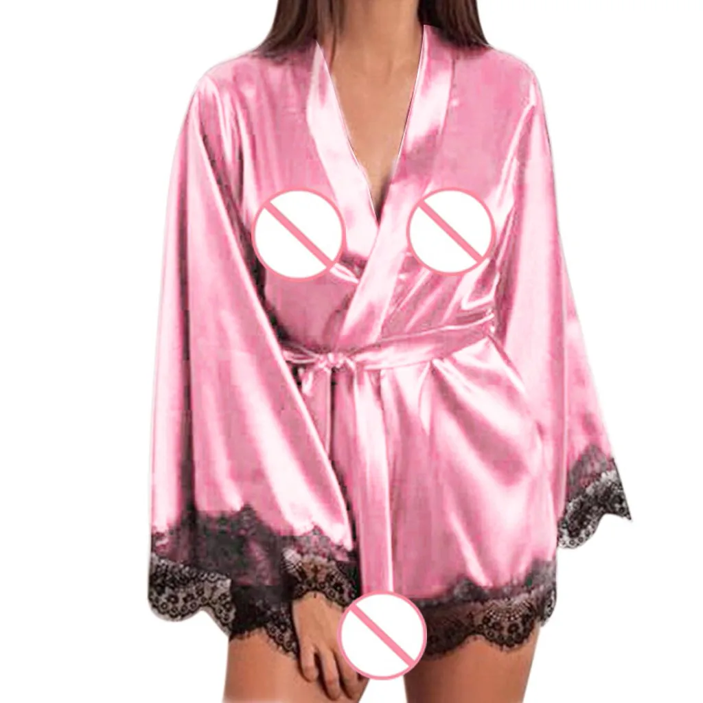 Халат женский атласный кружевной, мини-платье Ночная одежда, пикантная ночная рубашка, ночной халат, 2021