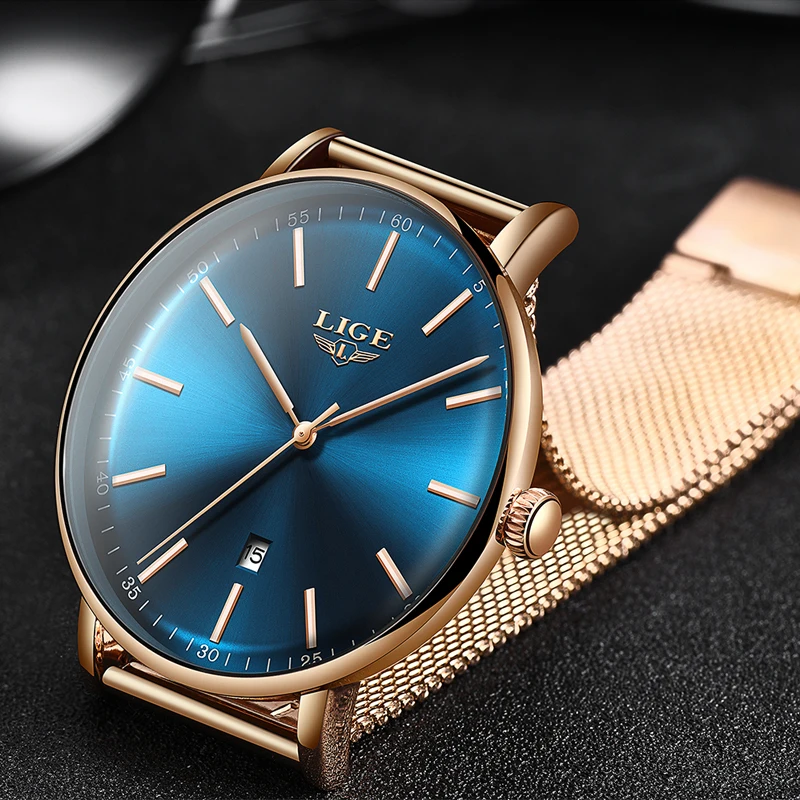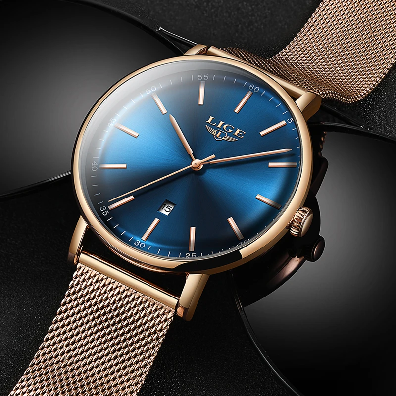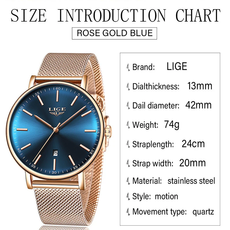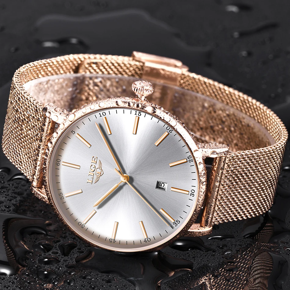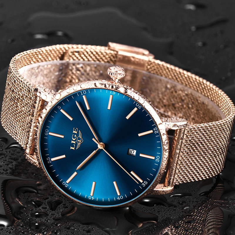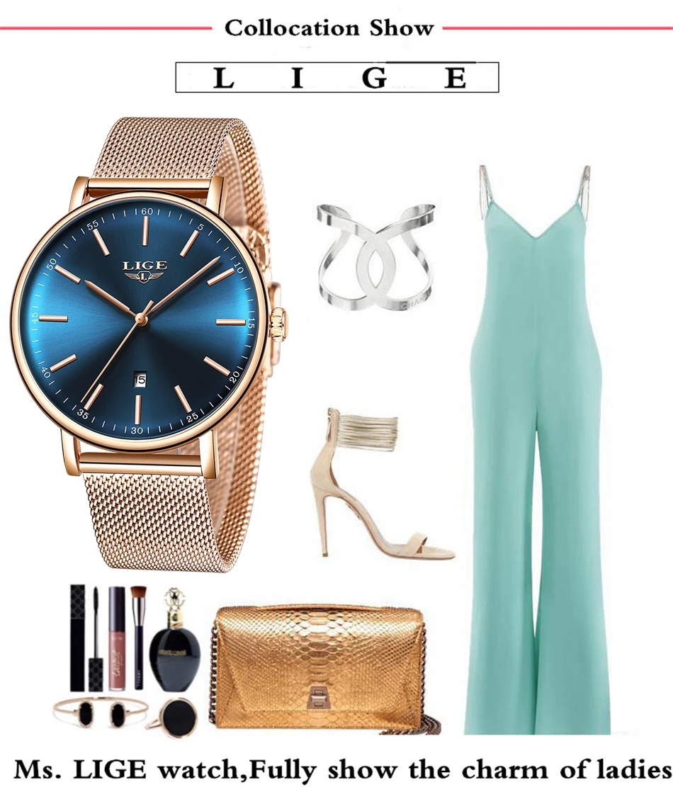 Часы LIGE женские кварцевые с сетчатым ремешком, брендовые Роскошны...