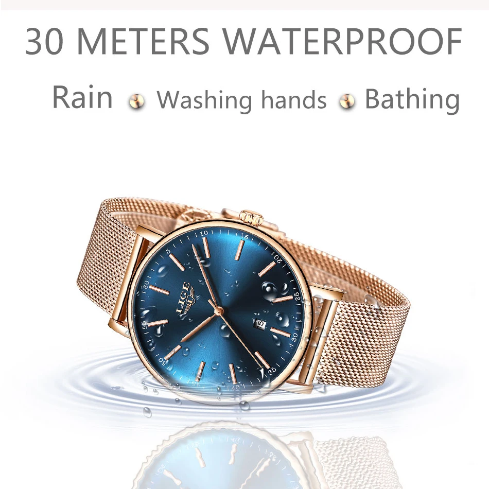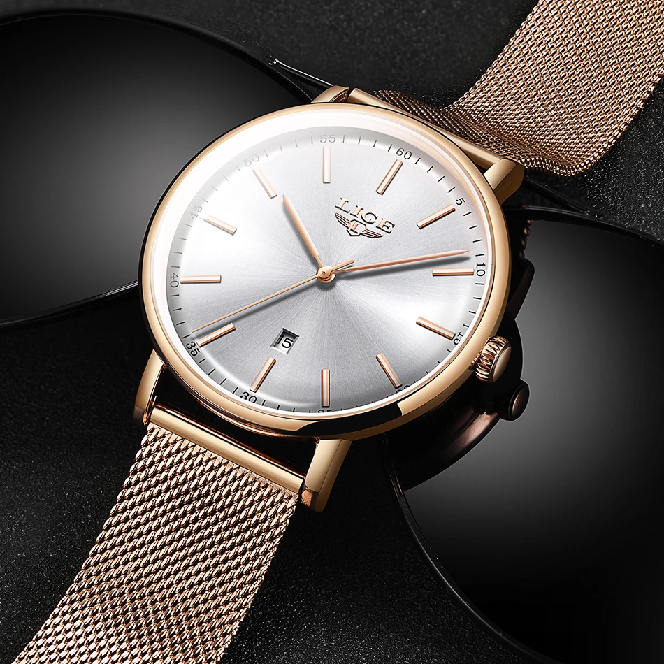 Женские часы LIGE, Роскошные наручные часы, relogio feminino, часы для женщин, Миланская сталь, Дамские Кварцевые часы розового золота, новые часы + коробка