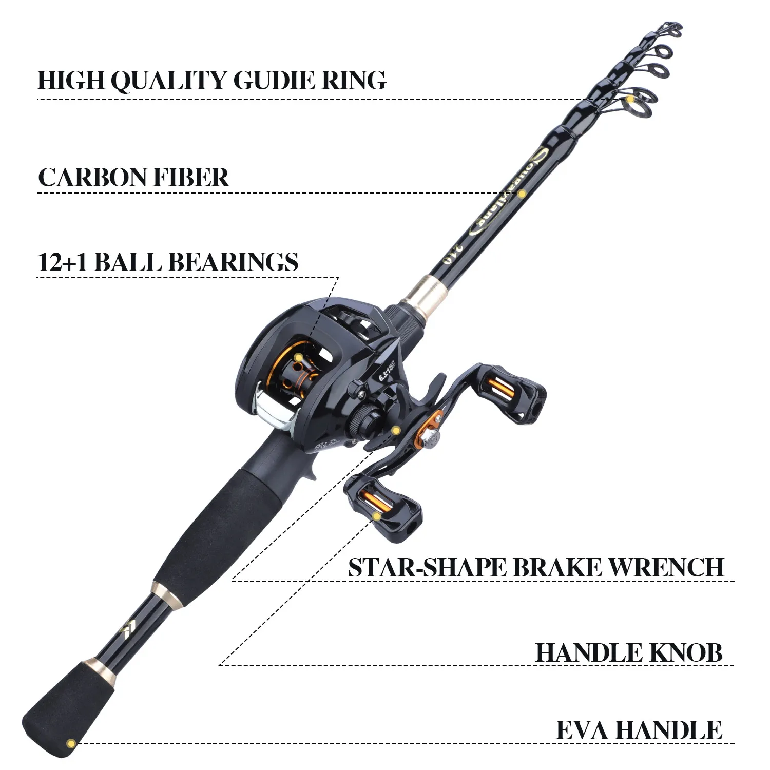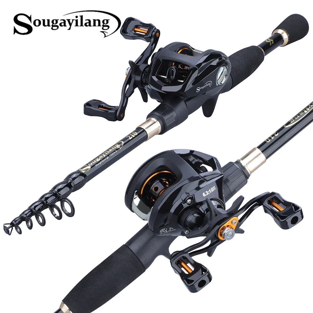 Портативная телескопическая удочка Sougayilang, рыболовная катушка с передаточным числом 1,8-2,4 м, 12 + 1 шарикоподшипников, 6,3: 1