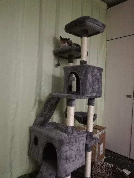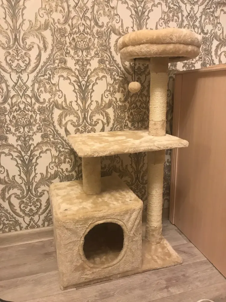 Отличная штука, котик очень доволен. Чуть чуть меньше, чем ожидаешь, но в целом нормального размера. Собирается просто, понятная инструкция помогает, даже когда руки растут из неправильного места. Тактильно приятная. Единственное - будут торчать четыре шляпки от винтов (на втором фото). За свои деньги штука хорошая.