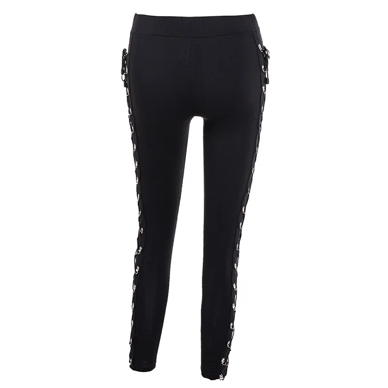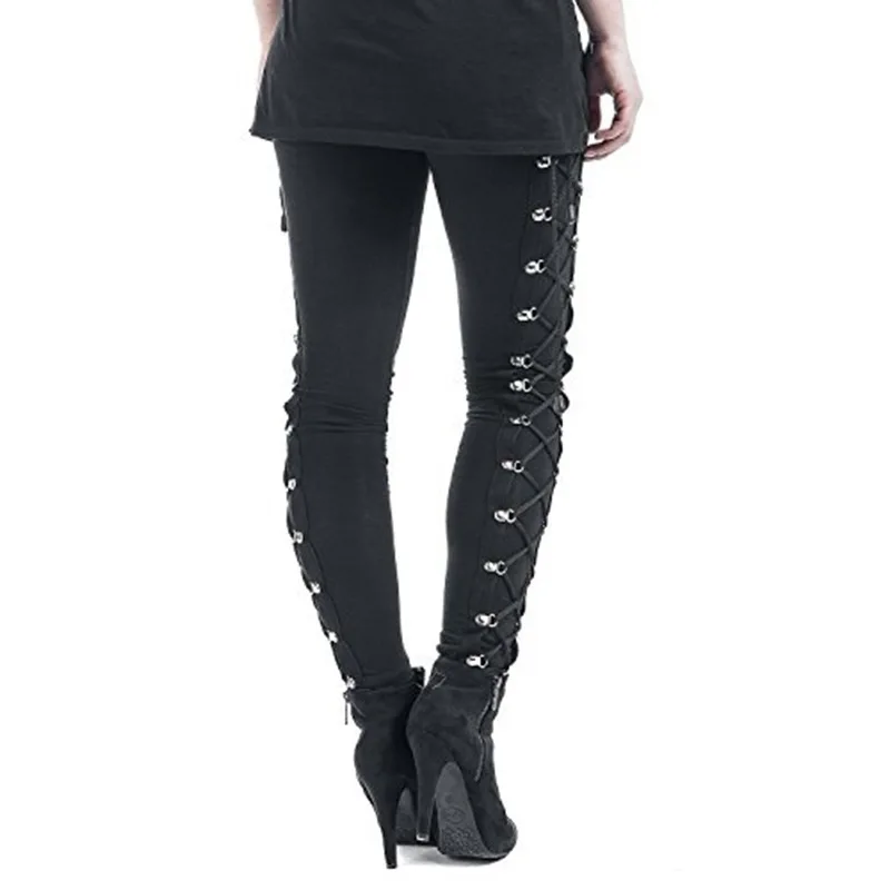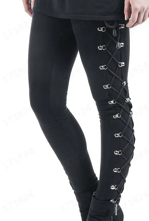 Женские облегающие брюки, черные готические леггинсы с боковой шнур...