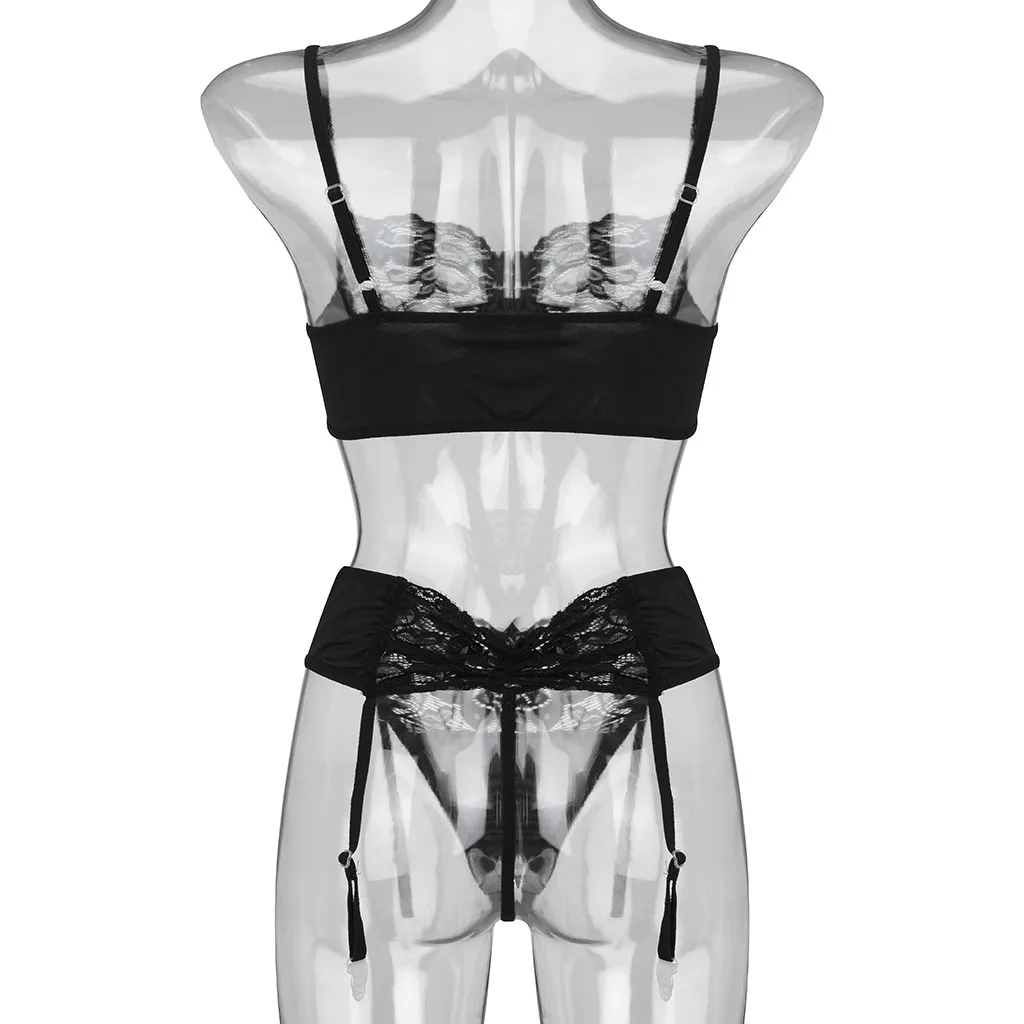 2020 популярный женский комплект с бюстгальтером, кружевное белье и трусики, комплект из 3 предметов, бюстгальтер без косточек, G-стринги и подвязки, женское нижнее белье