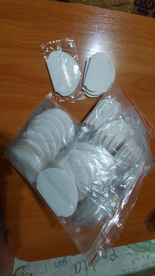 Советы по использованию: Снять клейкий лист с прокладки Вставьте колодку внутрь вашей одежды (широкую сторону колодки следует приклеить на внутреннюю сторону рукава; Узкую сторону колодки следует приклеить на внешнюю часть рукава). После использования Снимите прокладку Примечание: этот коврик можно отрезать самостоятельно, чтобы соответствовать вашему размеру.