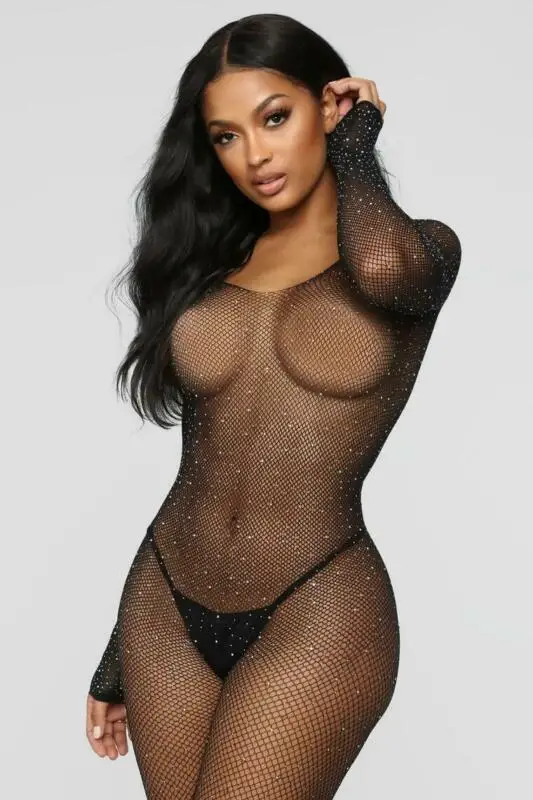 Девочки, штука просто ахренеть, качество лучше чем я думала. Мягкое, приятное к телу, стразики переливаются разными цветами и разных диаметров, как держаться не знаю, но при примерке не отвалились. Между ногами все таки есть вырез, на фото его нет, и не очень понятно, но он есть, можно комбез не снимать во время секса, быть красивой и сиять. Спасибо продавцу, в Польшу пришло за 2 недели. Размер максимум на 46, больше не налезет.