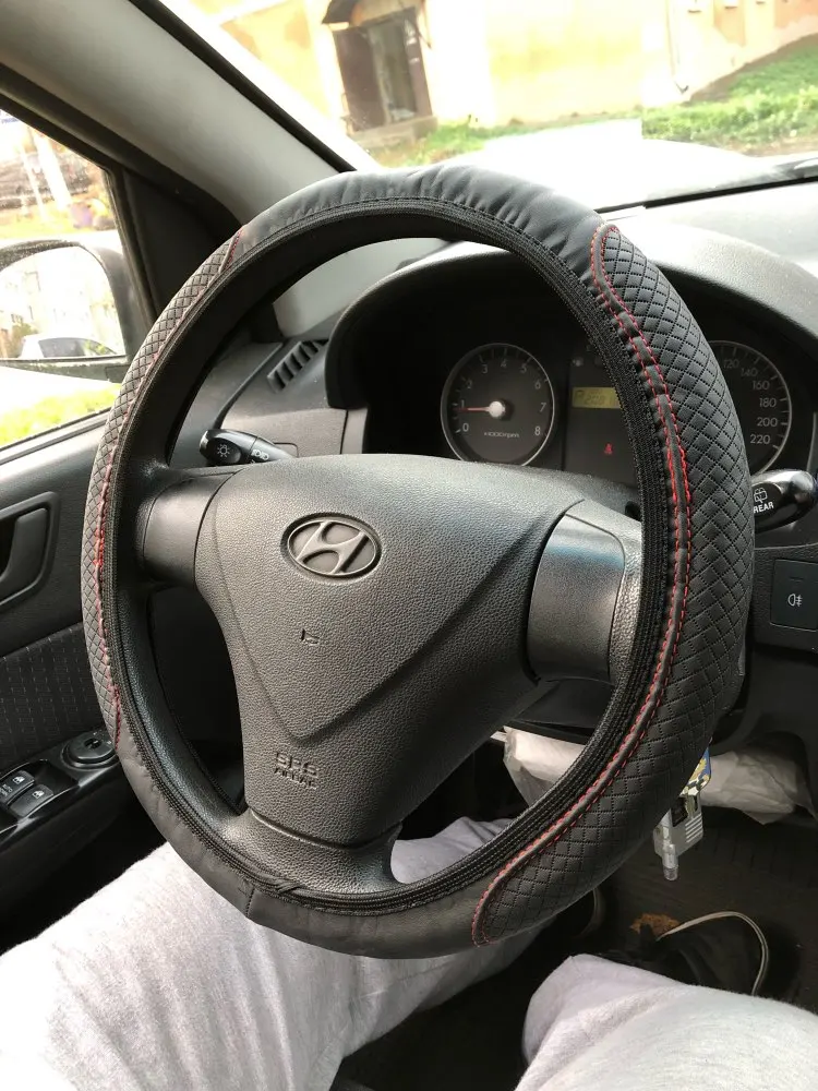 Чехол на руль автомобильный кожаный для Hyundai IX35, Solaris, Accent I30, Tucson, Elantra, Getz, I20, Sonata I40