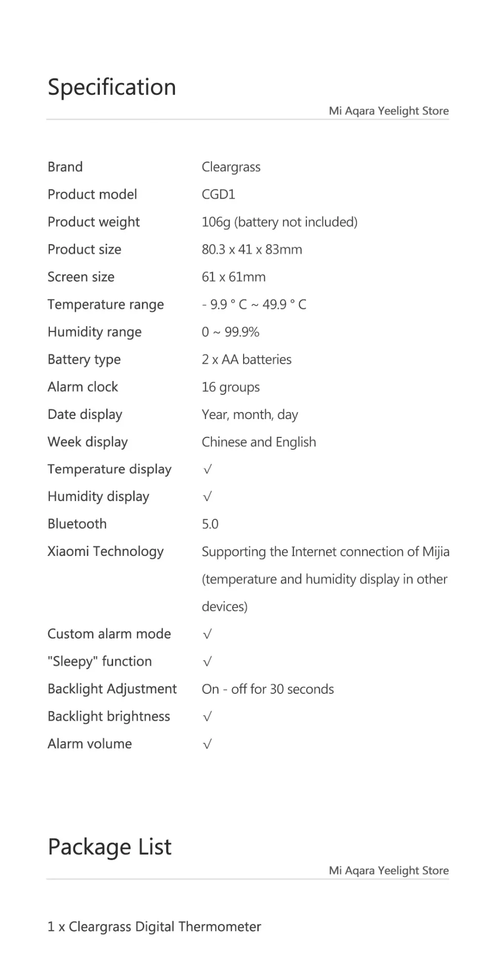 -Простой дизайн без пуговицПродукт может быть нажат в целом, что не реализует функцию кнопки, и операция очень интересна. Внутренняя конструкция силиконовой основы имеет удобное ощущение нажатия и простой внешний вид, который может быть хорошо интегрирован в различные места в доме.-Персонализированный будильник на заказКаждый раз, когда вы подключаете телефон через Bluetooth, время автоматически синхронизируется, и вы можете легко установить время. Вы можете установить 16 групп будильников, и каждая группа будильников может быть установлена для функции повтора, которая очень проста. 8 мелодий на выбор.-Отображение температуры и влажностиС использованием Швейцарский Sensirion датчик, измерением температуры точность определения его местонахождения составляет ± 0,2 ℃, влажность точность измерений составляет ± 2% RH, и температура и влажность изменений чутко почувствовали.-Нажмите, чтобы светильник Ночной светильникНажмите на будильник, включается подсветка, вы можете четко проверить время даже ночью.-Отрегулируйте подсветку в любое времяИнтенсивность подсветки может регулироваться в различные периоды, а продолжительность подсветки также может быть скорректирована, от полного выключения до 30 секунд.-Удобная умная маленькая домработницаСотрудничество с другим оборудованием Mijia для реализации автоматической регулировки температуры и влажности в помещении. Например: если температура ниже 20 ℃, Нагреватель будет включаться автоматически.