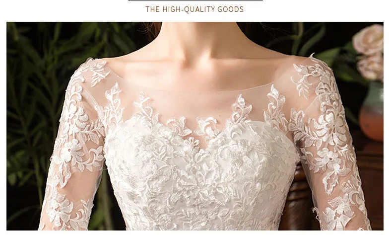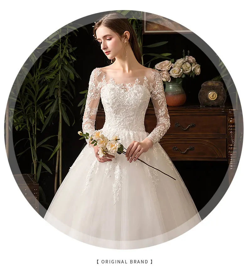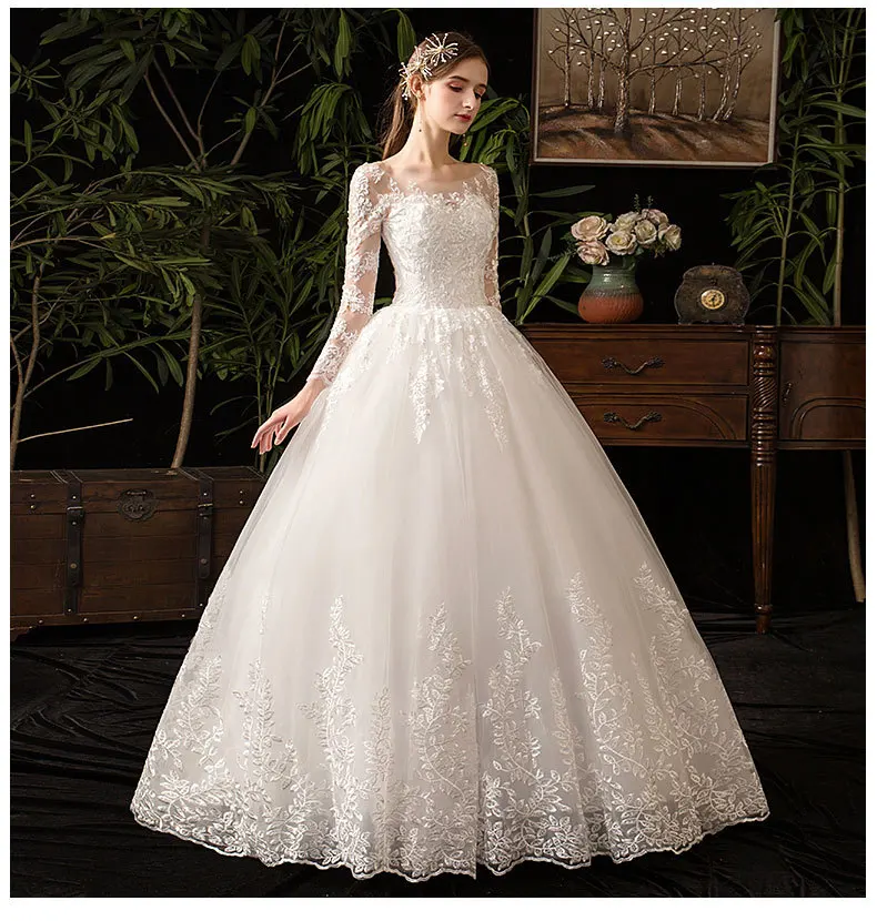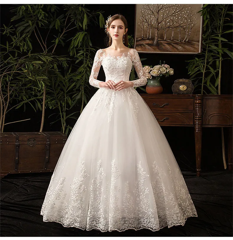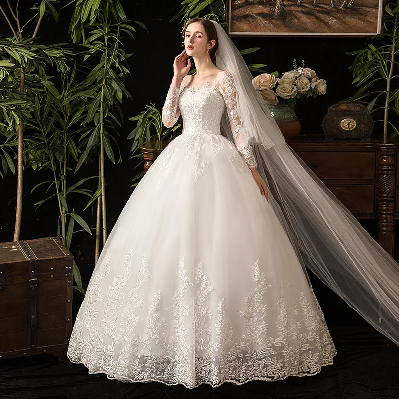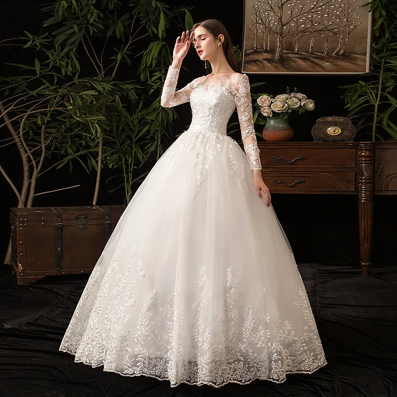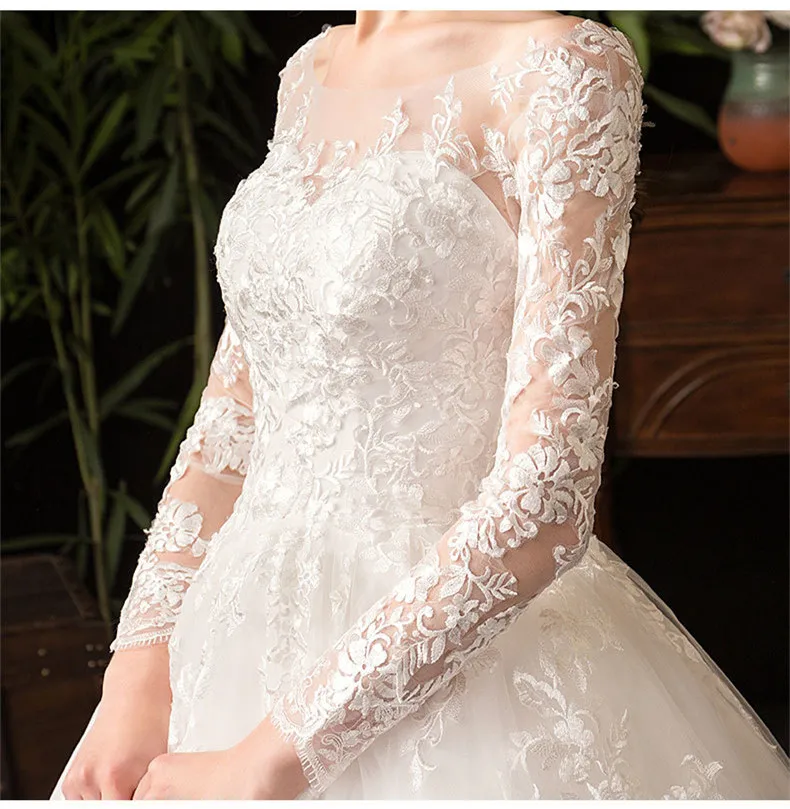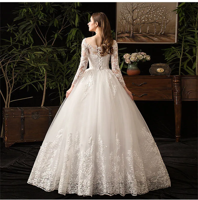 Женское кружевное свадебное платье с вышивкой, Белое Бальное Платье с длинными рукавами и вырезом лодочкой, вечернее платье невесты, бесплатная доставка