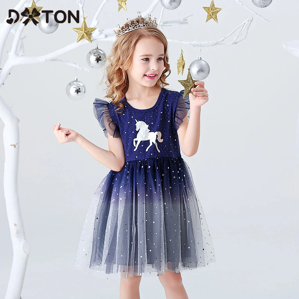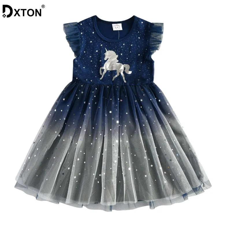 DXTONОдежда для девочек; Новинка 2020 года; Летние платья принцессы с рукавами-крылышками; Детское платье с единорогом; Вечерние платья для девочек; Одежда для детей; От 3 до 8 лет