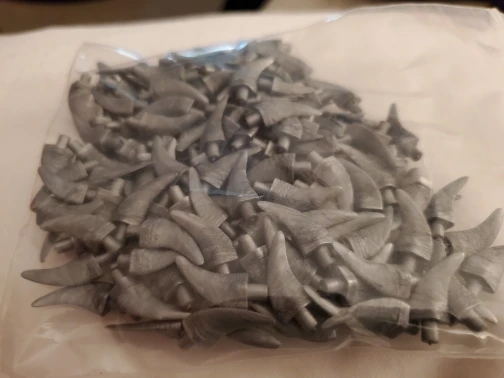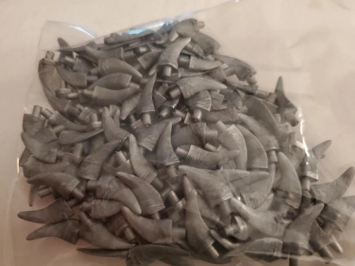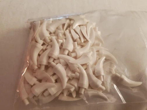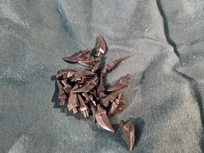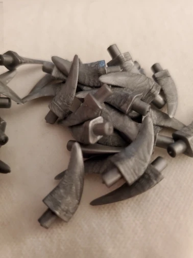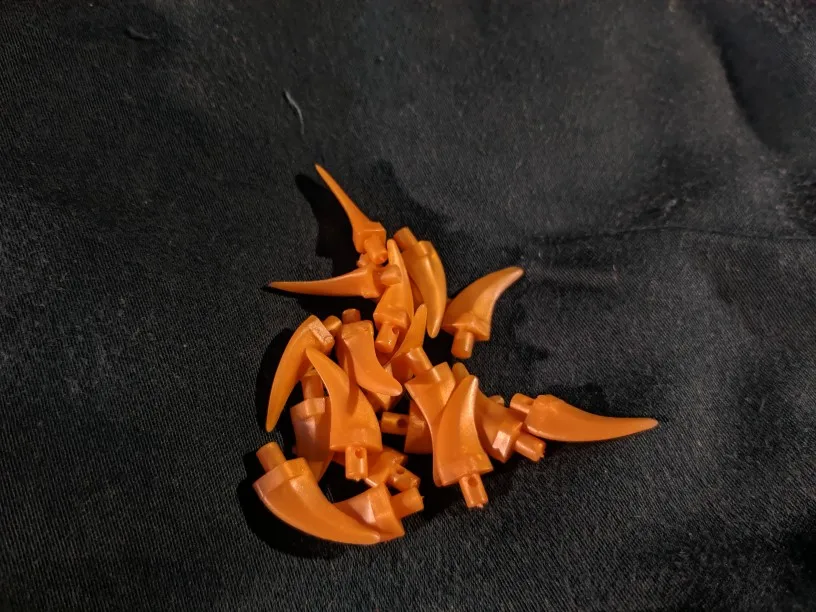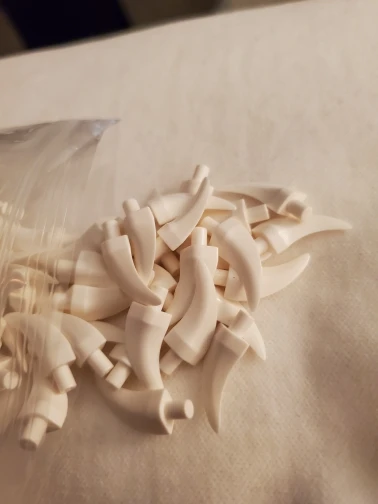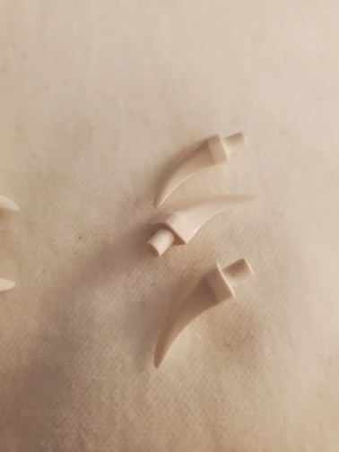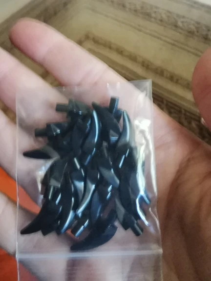 Something weird going on with these. The black and white ones are made out of a hard plastic (probably ABS). And the golden and green ones are from a soft almost rubbery material. I don't know which material the famous Danish block seller uses for these parts.