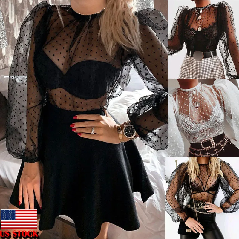 Женская прозрачная сетчатая блузка в горошек, элегантная пикантная ...