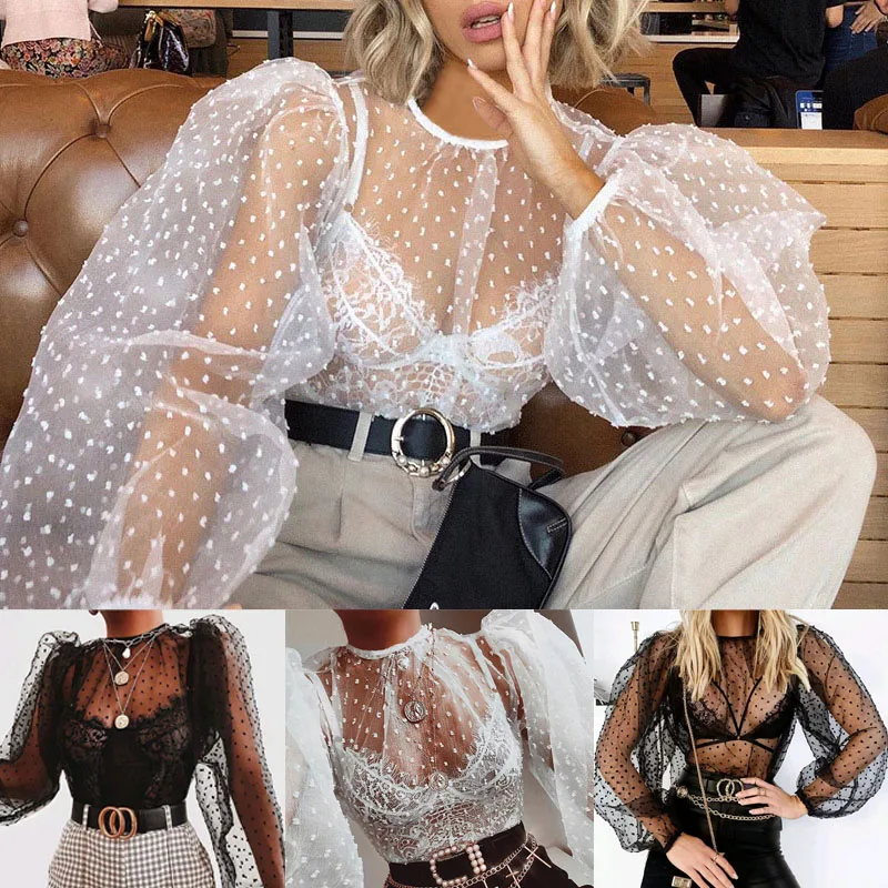 Женская блузка kayojuta в горошек, сетчатые Прозрачные топы с длинн...