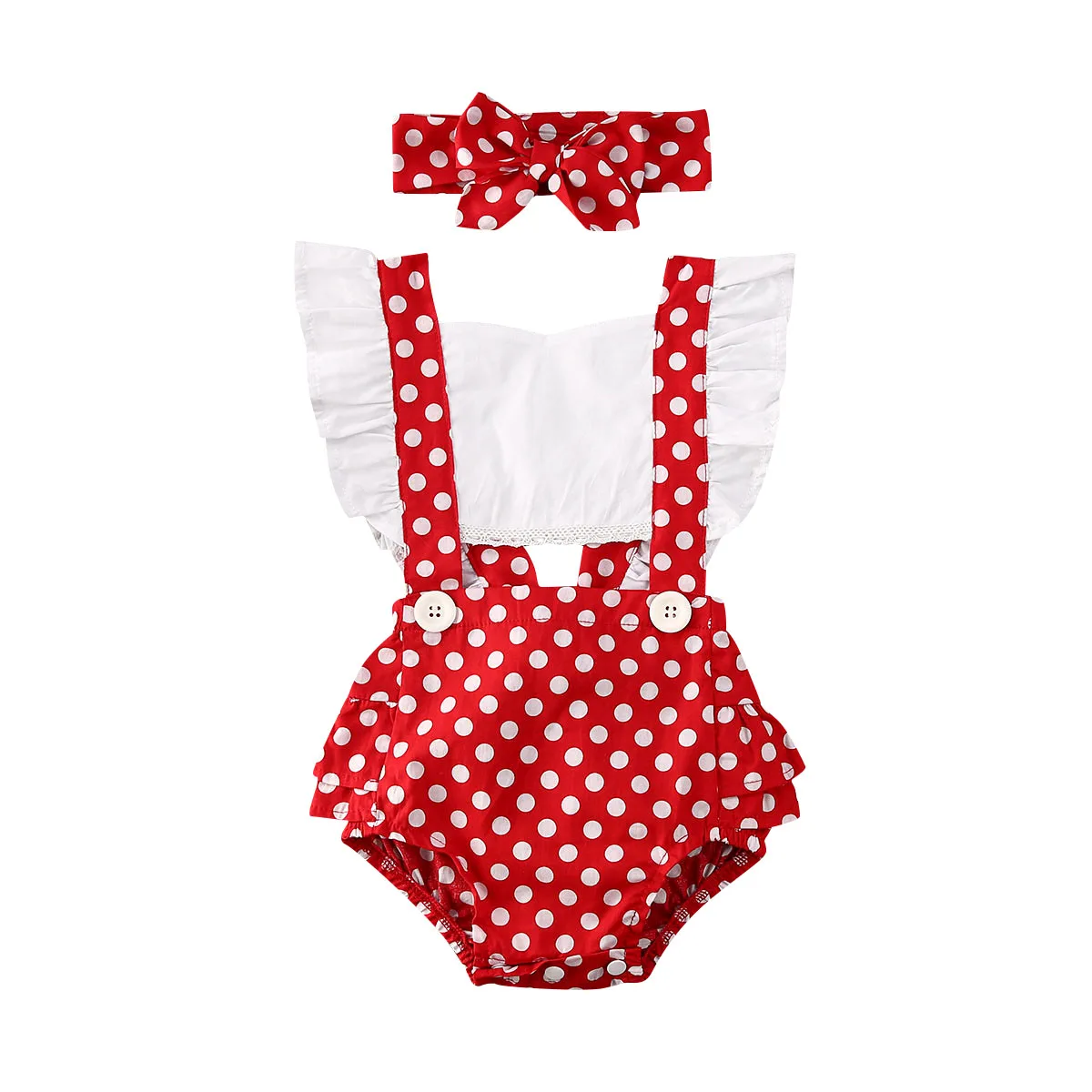 Детский комбинезон в горошек, без рукавов, с оборками, Размеры 0-24 м