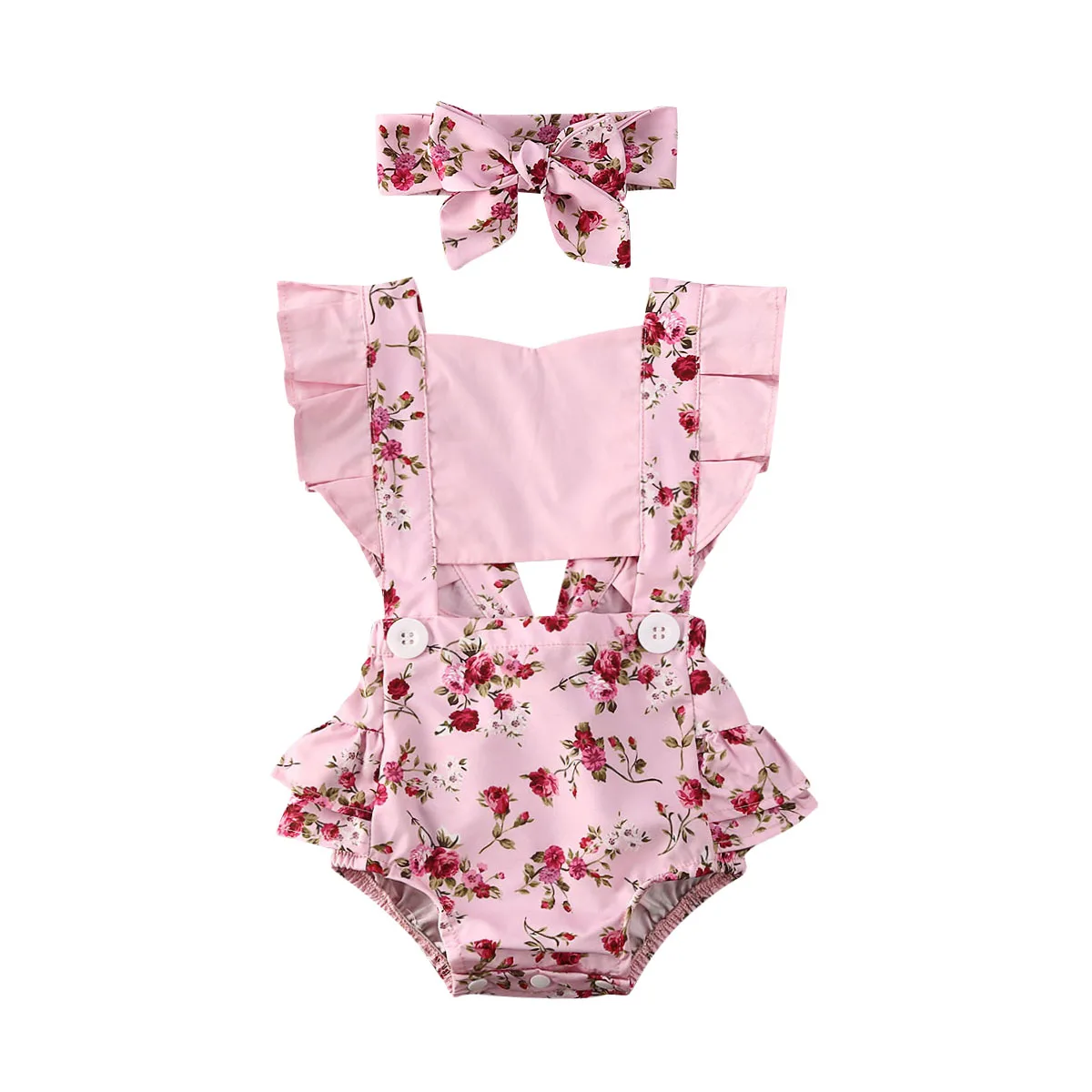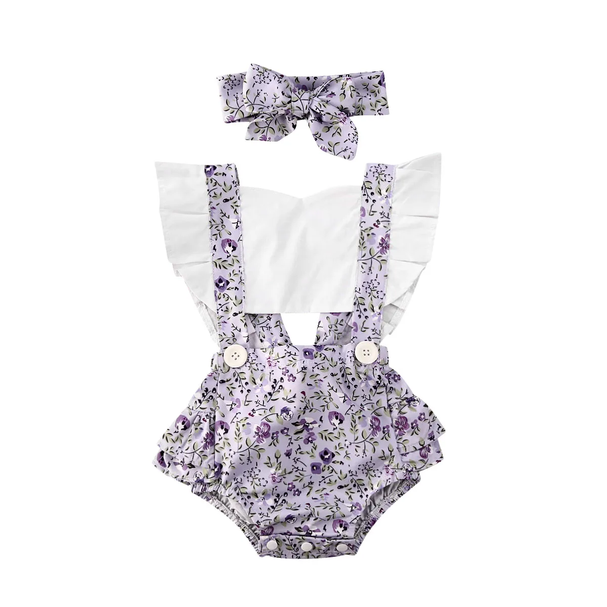 Комбинезон для девочек 0-24 месяцев, с цветочным принтом и оборками...