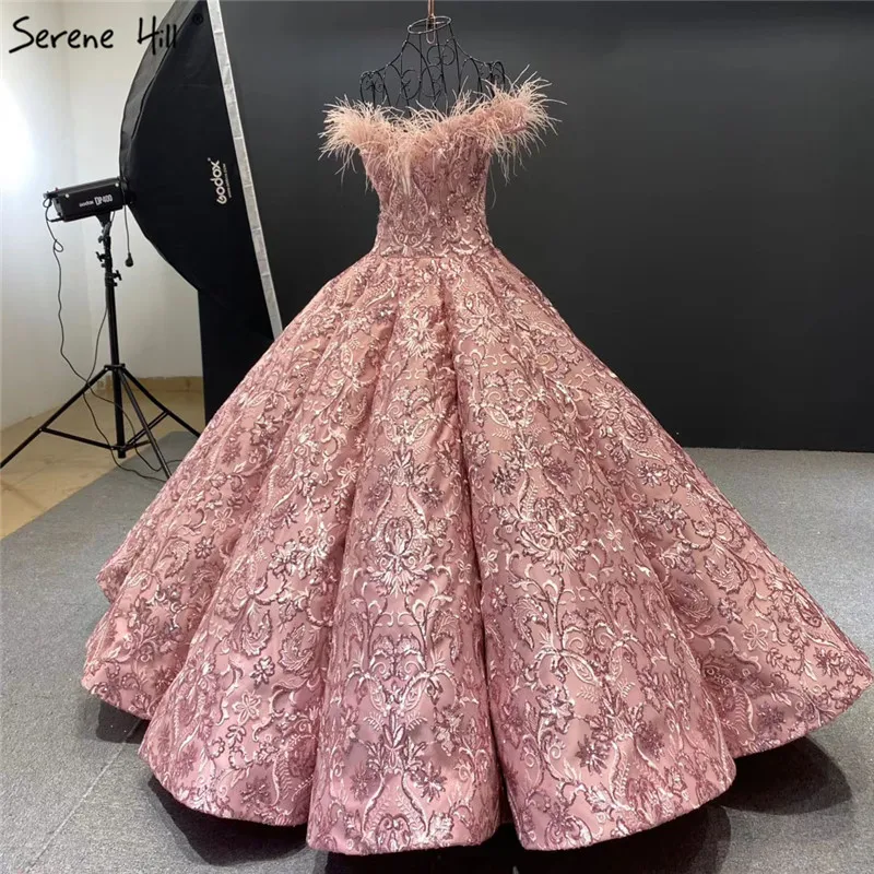 Бобы розовые Элитные перья блестки Свадебные платья 2021 с открытыми плечами сексуальное роскошное свадебное платье HA2295 на заказ