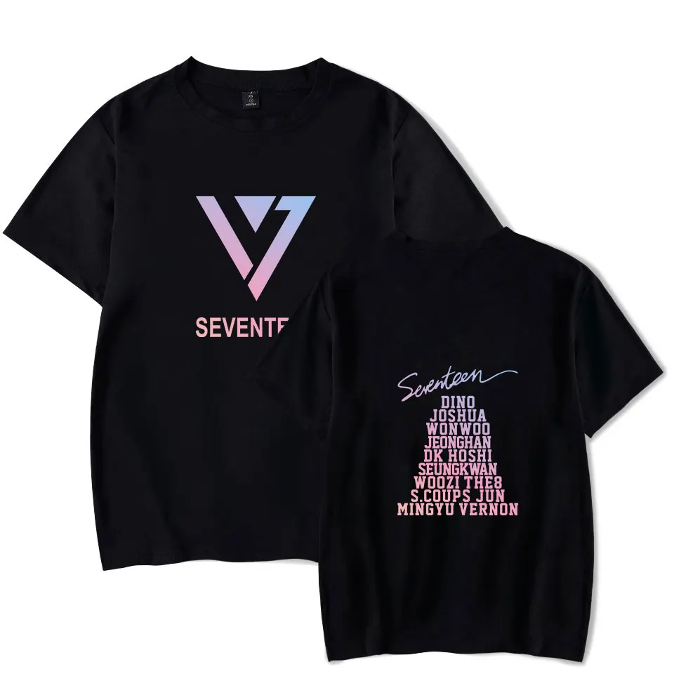 Летняя футболка в стиле K-POP с надписью Seventeen, Модная хлопковая футболка с коротким рукавом, футболка Seventeen для молодых подростков, футболка большого размера, одежда