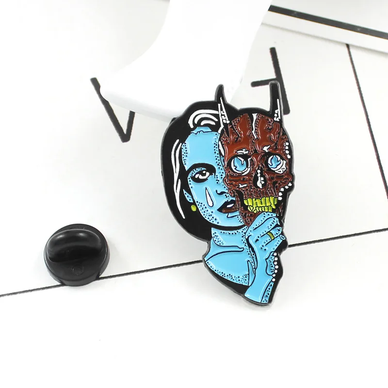 Модная брошь в виде синей девушки с изображением монстра, черепа, м...