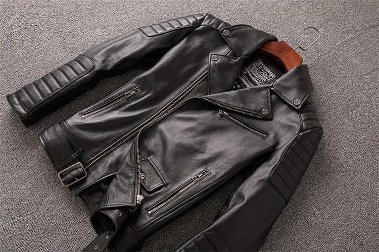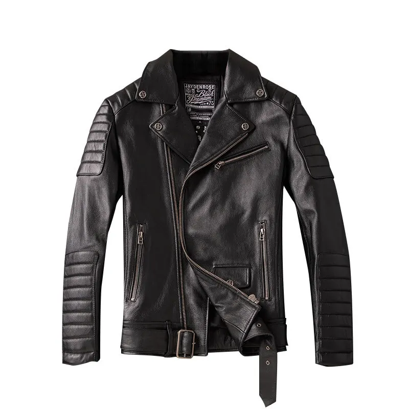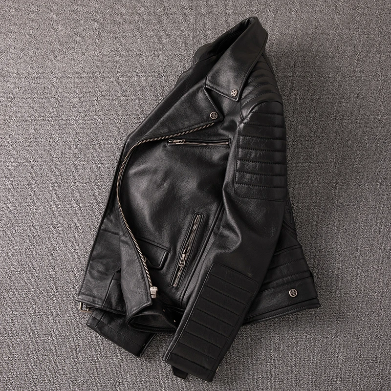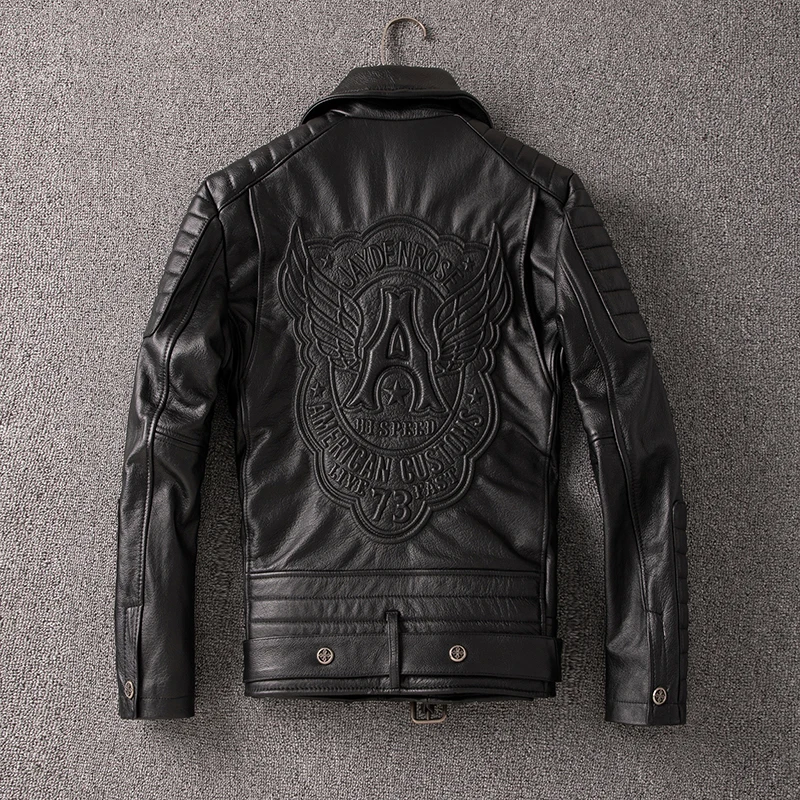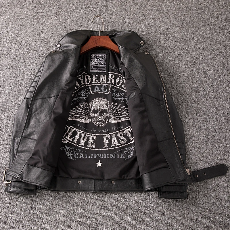 Куртка мужская из натуральной кожи, Байкерская, винтажная, осенне-зимняя, 100%