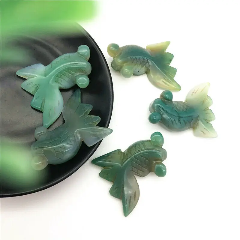 Прямая поставка, 1 шт., зеленая сердолика, агат, Золотая Рыба, Сардоникс, кристалл, Золотое исцеление, подарок, Декор, камни и кристаллы
