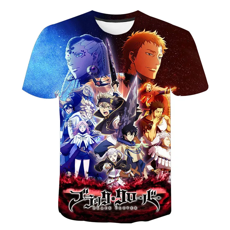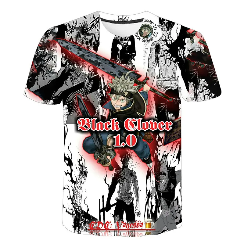 2020 г. Мужская, женская, Детская футболка с объемным изображением черного клевера модная футболка классная футболка в стиле аниме для мальчиков и девочек Harajuku, уличная одежда с короткими рукавами, топы