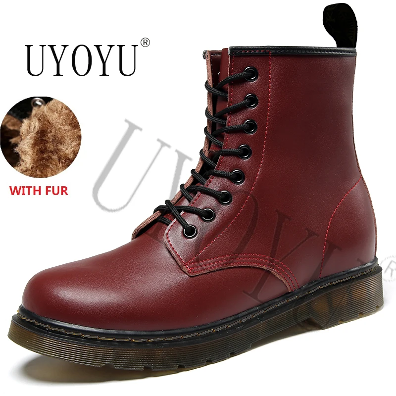 Женские мотоциклетные ботильоны из натуральной кожи, красные непромокаемые ботинки с высоким берцем и мехом, размер 45, 46, для зимы, 2021