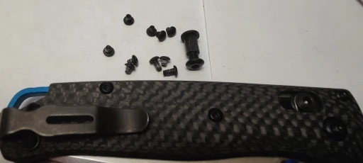 От заказа до доставки в Питер прошло 7 недель, но это продавец почему-то долго не мог отправить заказ. Время в пути заняло всего 19 дней. Все винты сделаны отлично, идеально подошли на оригинальный Bogout, механика ножа не изменилась. Эти винты сделаны даже аккуратней, так как оригинальные слегка торчали из лайнеров. Металл вообще не магнитится, скорее всего титан. После сборки ножа остался один запасной маленький винт.