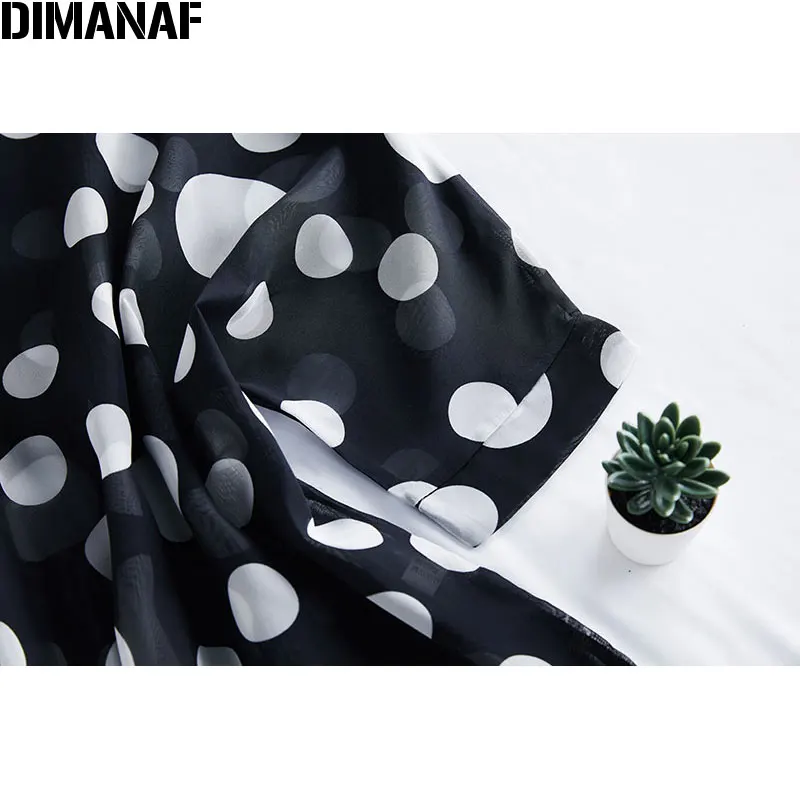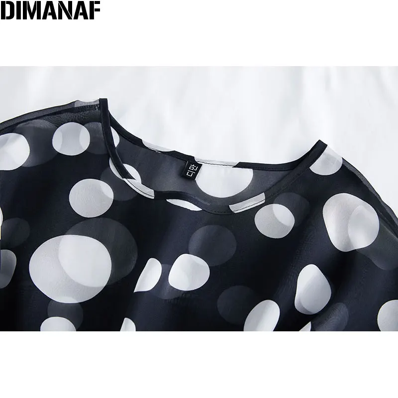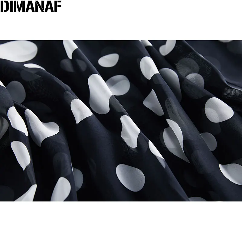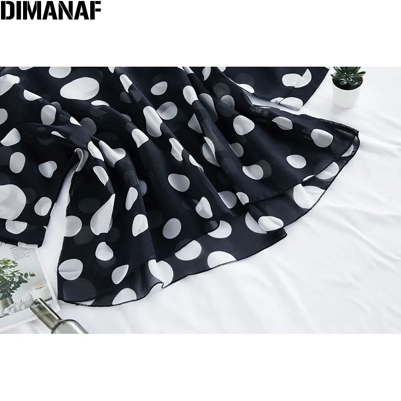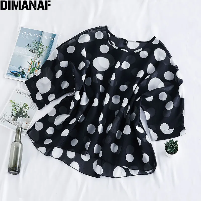 Женские летние платья DIMANAF размера плюс, блузки, рубашки Дамские топы, туника, шифоновая повседневная с принтом в горошек, черная тонкая женская одежда большого размера