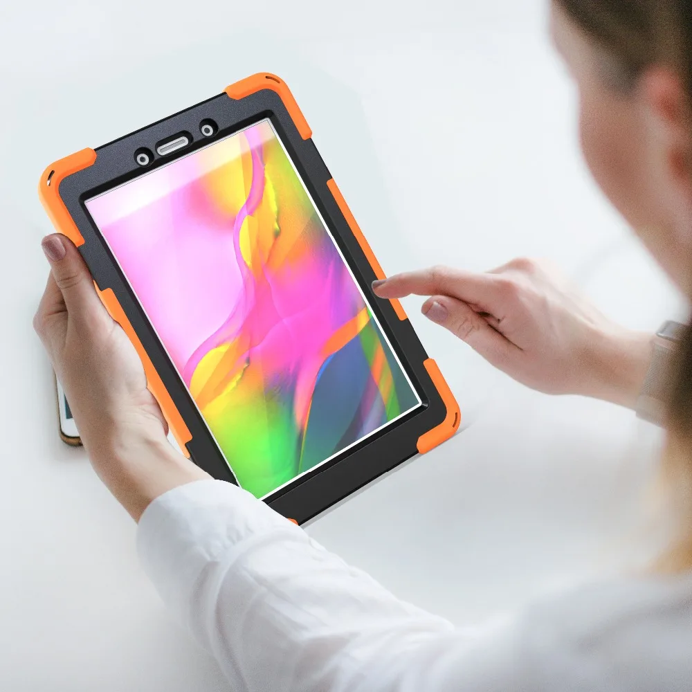 Чехол для Samsung Tab A 8,0 T290 2019, противоударный чехол для Samsung Galaxy Tab A8 SM-T290 T295, чехол с ручным ремешкомОписание:-100% новый, потрясающий дизайн с насыщенным цветом и функциональностью-Материал: жесткий пластик/силикон-Силиконовый внешний слой, жесткий внутренний слой из поликарбоната, улучшает ощущение передачи-Защитите и Персонализируйте свое оборудование с помощью этого трехслойного чехла чехол-Защищает от царапин, отпечатков пальцев, падений и пыли-Вырез камеры глубокий, защищает камеру телефона от царапин и обеспечивает полную функциональность вспышки-Сжимайте скрытую подставку: скрытая за оболочкой, термоусадочная может использоваться в качестве подставки для освобождения рук-Простота установки и удаленияДля Samsung Galaxy Tab A 8,0 SM T290 T295 2019