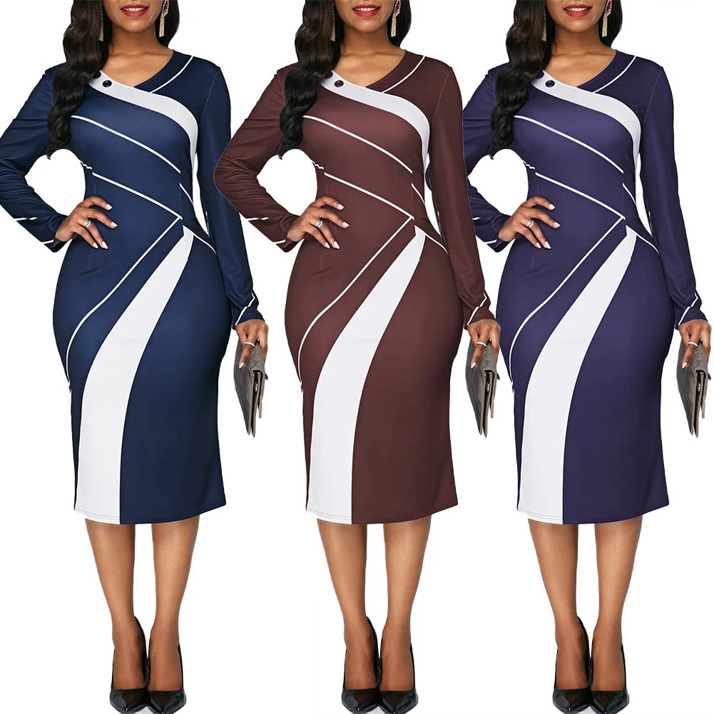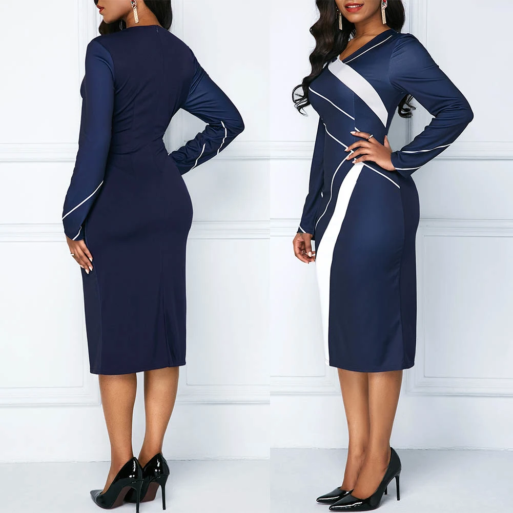 Женское платье большого размера модное вечернее платье в полоску с V-образным вырезом и длинным рукавом до колена пикантное платье с оболочками Характеристики: Простой, но стильный дизайн с принтом в полоску и цветными блоками. Покажите свою хорошую фигуру с этим платьем-футляром по любому случаю. Подходит для вечерней вечеринки, банкета, клуба или просто повседневной носки. Тип: Платье Пол: женские Стиль: Модный Материал: нейлон, полиэстер, спандекс Тип размера: Обычный Длина рукава: длинный рукав Шея: V-образный вырез Длина платья: длина до колена Случаи: Повседневная жизнь, отпуск, вечерние, бар, клуб, офис и т. д. Особенности: в полоску, с цветными блоками, облегающий, удобный Детали размера [Наш Размер S] Бюст: 86 см/33,86 дюйма, талия: 74 см/29,13 дюйма, бедра: 92 см/36,22 дюйма, длина: 99 см/38,98 дюйма (прибл.) [Наш Размер M] Обхват груди: 90 см/35,43 дюйма, обхват талии: 78 см/30,71 дюйма, обхват бедер: 96 см/37,80 дюйма, длина: 100 см/39,37 дюйма (прибл.) [Наш Размер L] Бюст: 94 см/37,01 дюйма, талия: 82 см/32,28 дюйма, бедра: 100 см/39,37 дюйма, длина: 101 см/39,76 дюйма (прибл.) [Наш Размер XL] Бюст: 98 см/38,58 дюйма, талия: 86 см/33,86 дюйма, бедра: 104 см/40,94 дюйма, длина: 102 см/40,16 дюйма (прибл.) [Наш Размер 2XL] Бюст: 102 см/40,16 дюйма, талия: 90 см/35,43 дюйма, бедра: 108 см/42,52 дюйма, длина: 103 см/40,55 дюйма (прибл.) [Наш Размер 3XL] Бюст: 106 см/41,73 дюйма, талия: 94 см/37,01 дюйма, бедра: 112 см/44,09 дюйма, длина: 104 см/40,94 дюйма (прибл.) [Наш Размер 4XL] Бюст: 110 см/43,31 дюйма, Талия: 98 см/38,58 дюйма, бедра: 116 см/45,67 дюйма, длина: 105 см/41,34 дюйма (прибл.) [Наш Размер 5XL] Бюст: 114 см/44,88 дюйма, талия: 102 см/40,16 дюйма, бедра: 120 см/47,24 дюйма, длина: 106 см/41,73 дюйма (прибл.) Примечания: Пожалуйста, обратитесь к нашей таблице размеров и выберите правильный размер. Из-за разницы в освещении и настройках экрана цвет изделия может немного отличаться от изображения. Посылка входит: 1 х платье
